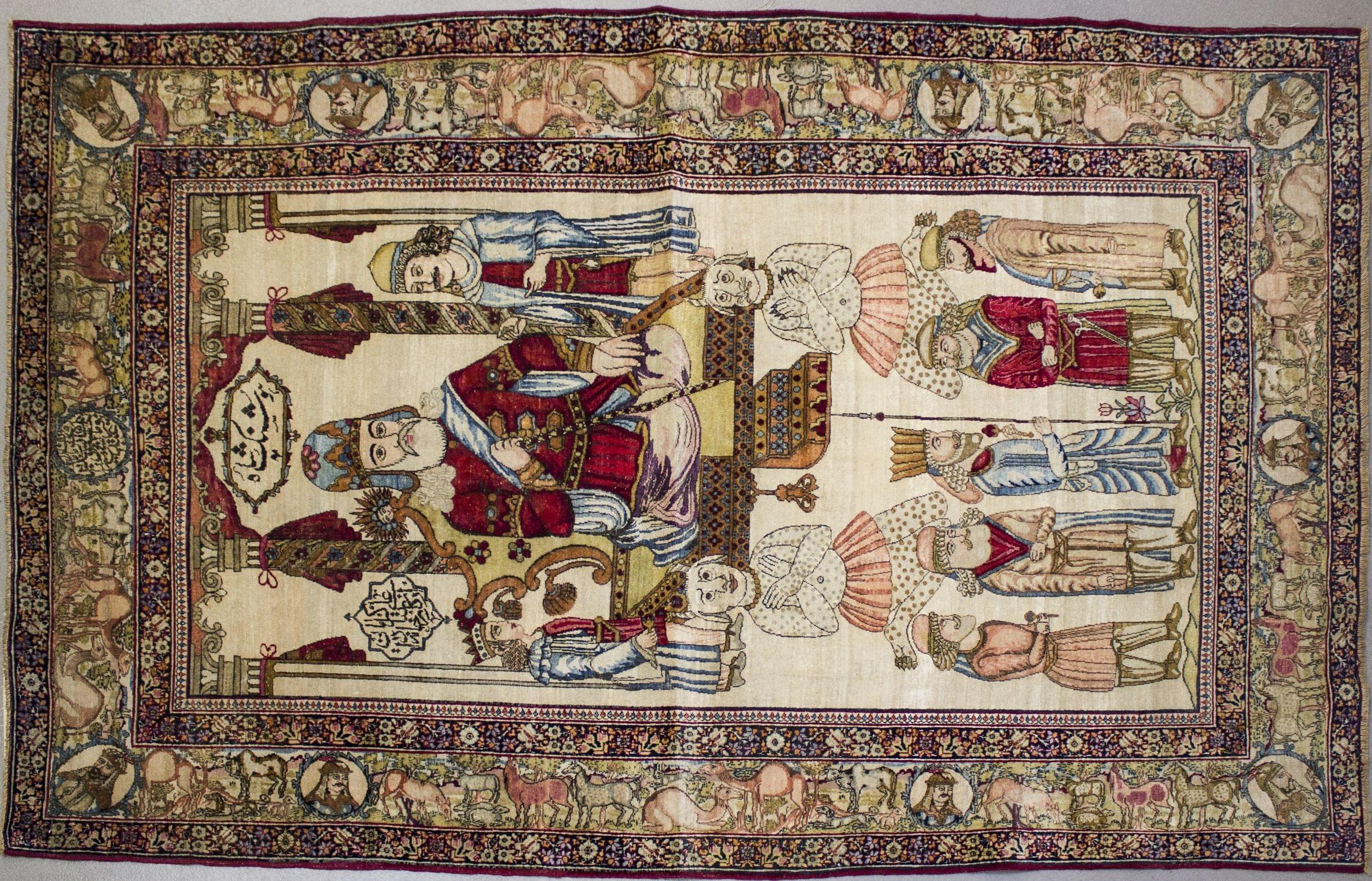 Laine et soie, à décor d'un shah et de sa cour, 230x140 cm