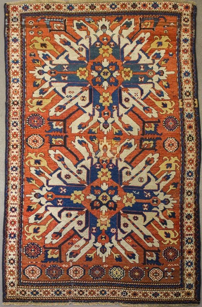 A motifs de deux médaillons à l'aigle sur fond rouge brique, 126x201 cm