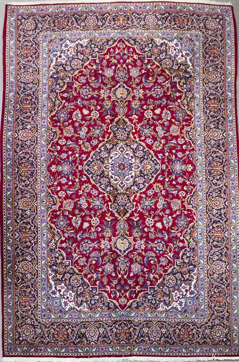 A décor de rinceaux sur fond crème, laine/soie, 165x105 cm