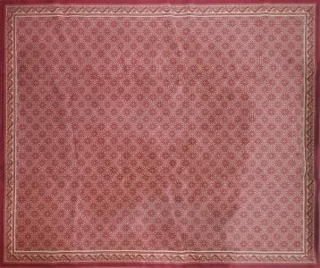 A motifs de fleurs sur fond crème, bordure sur fond carmin, 267x...