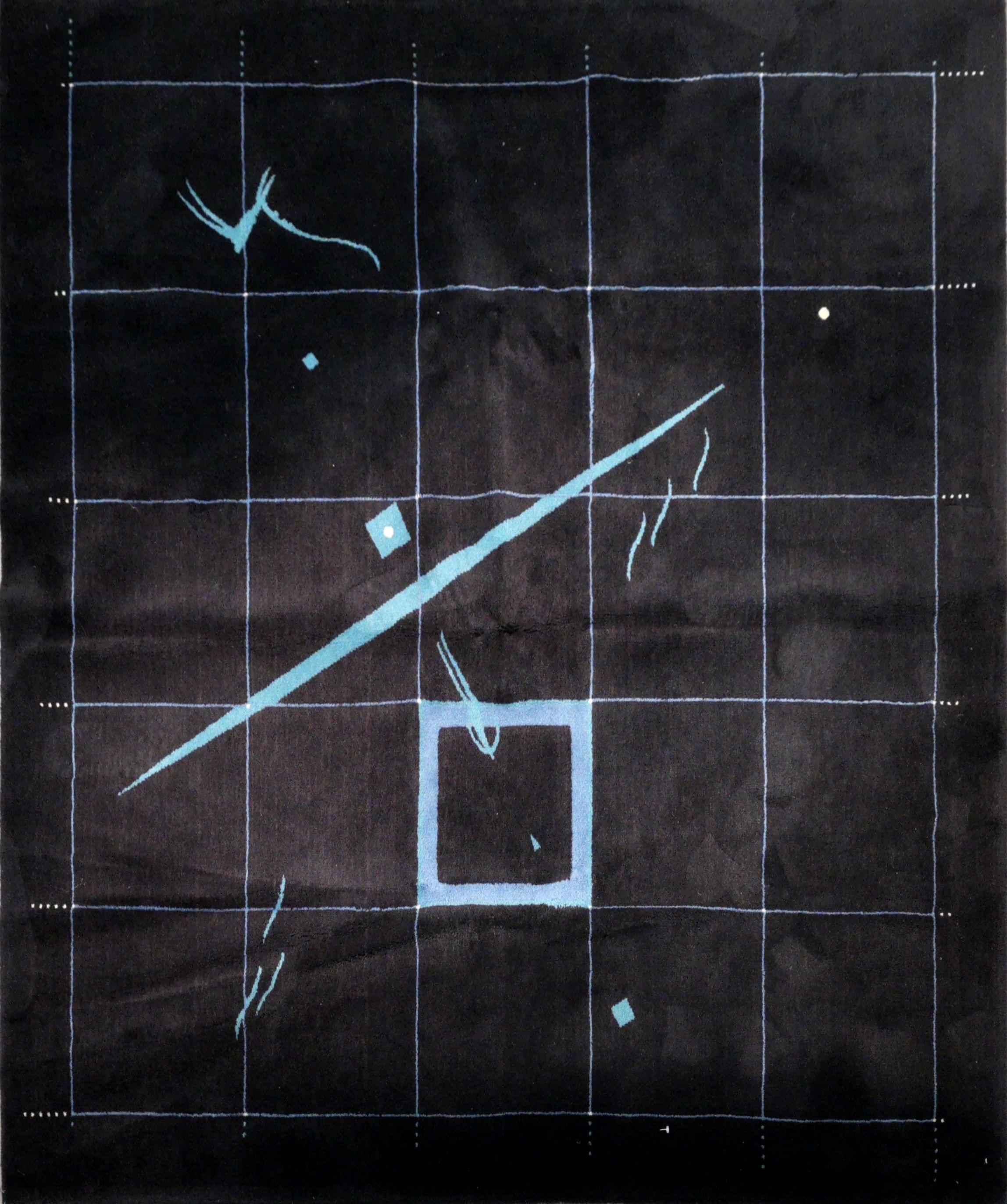A décor abstrait turquoise sur fond noir, 190x200 cm. Provenance: collection Pernet-Villaverde