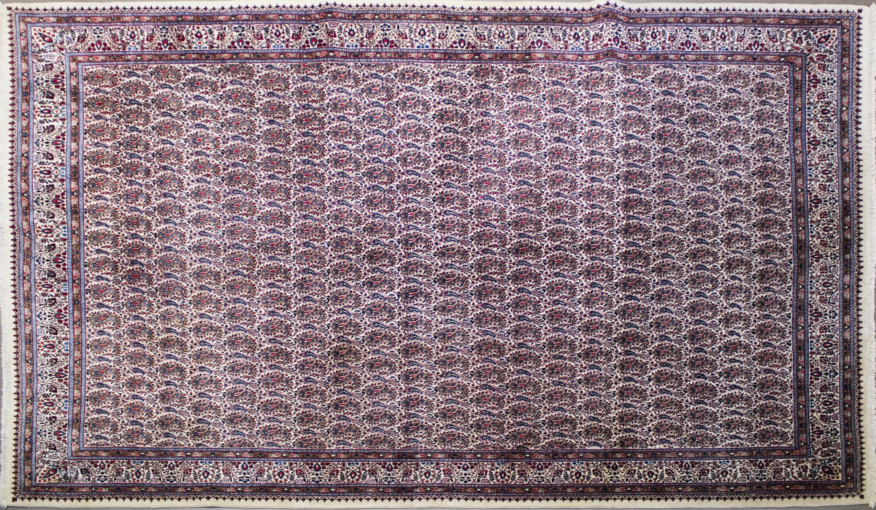 Champ central orné de Botehs sur fond ivoire, bordure à fleurs sur fond ivoire, 210x305 cm