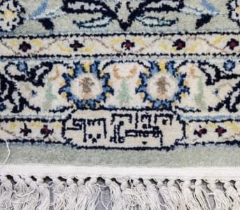 A décor de rinceaux sur fond ivoire, bordure sur fond bleu clair, laine, 380x280 cm