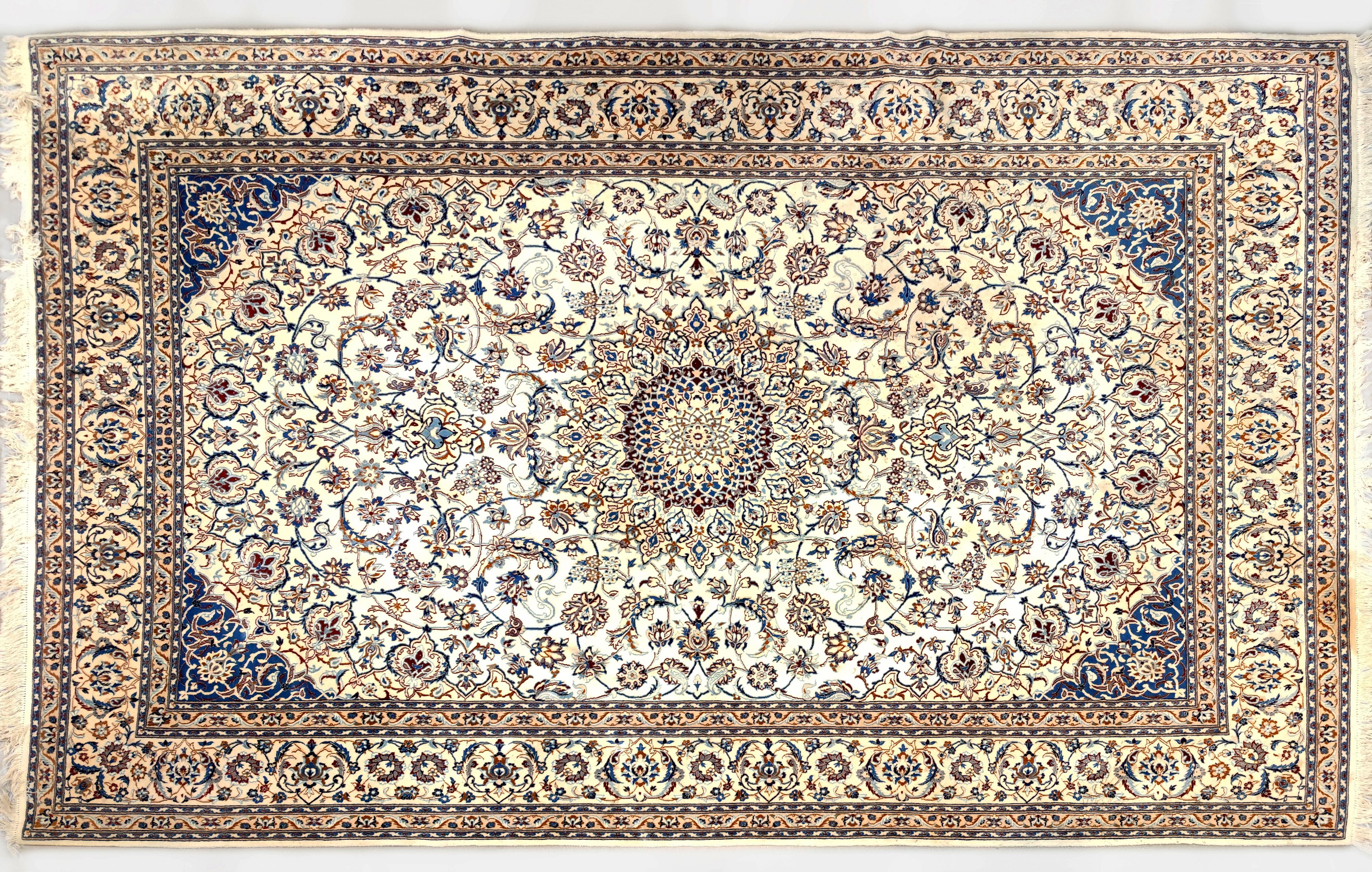 Soie à médaillon central à rosace marine et crème sur champ ivoi...