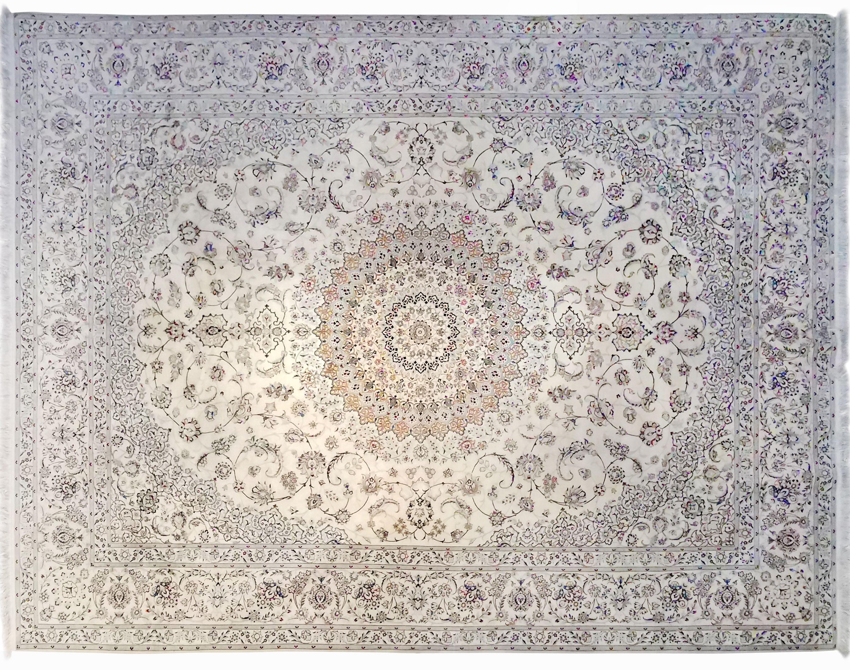 Laine à décor de motifs floraux sur fond beige, 400x300 cm