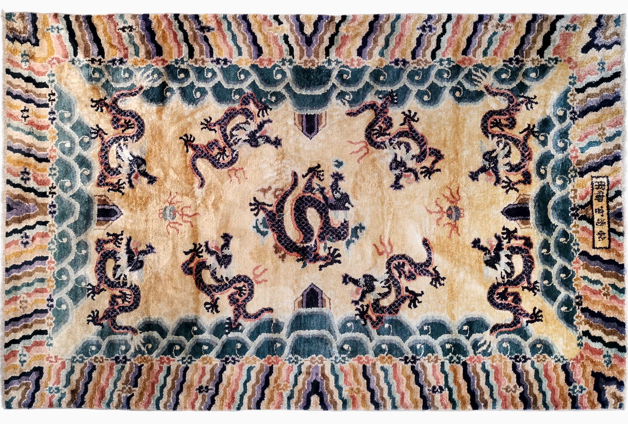 A motifs de dragons sur fond jaune, 155x240 cm