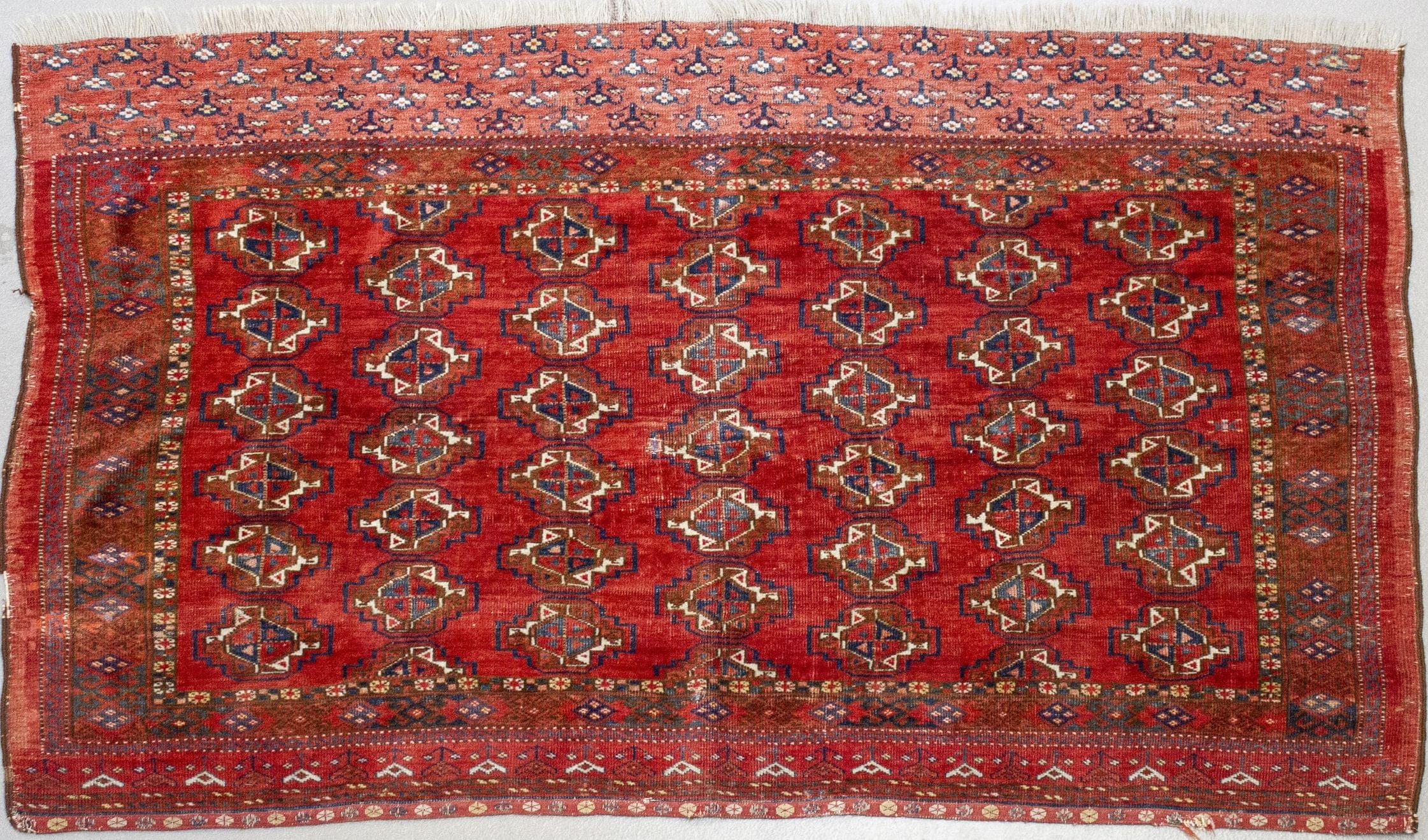 Soie à motifs géométriques et stylisés sur fond rouge, 97x150 cm