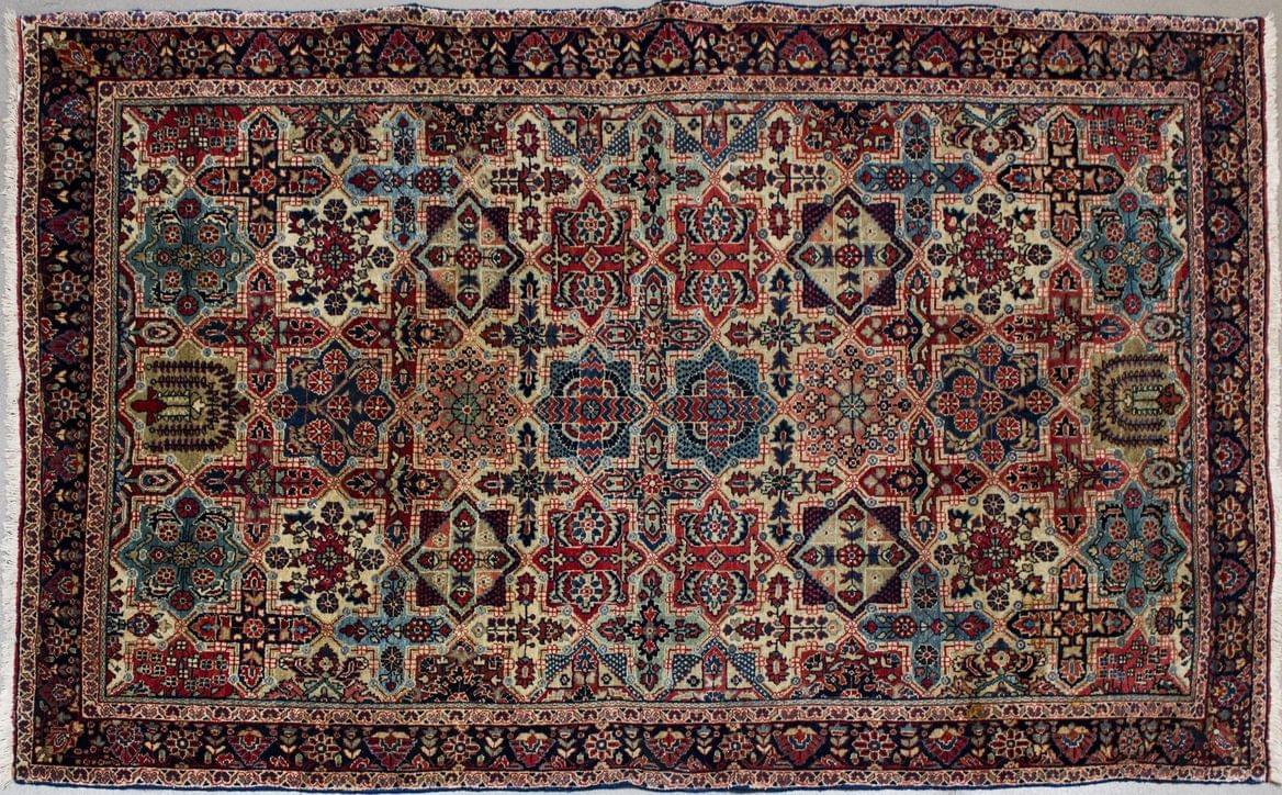A décor de personnages sur fond crème, laine, 238x137 cm
