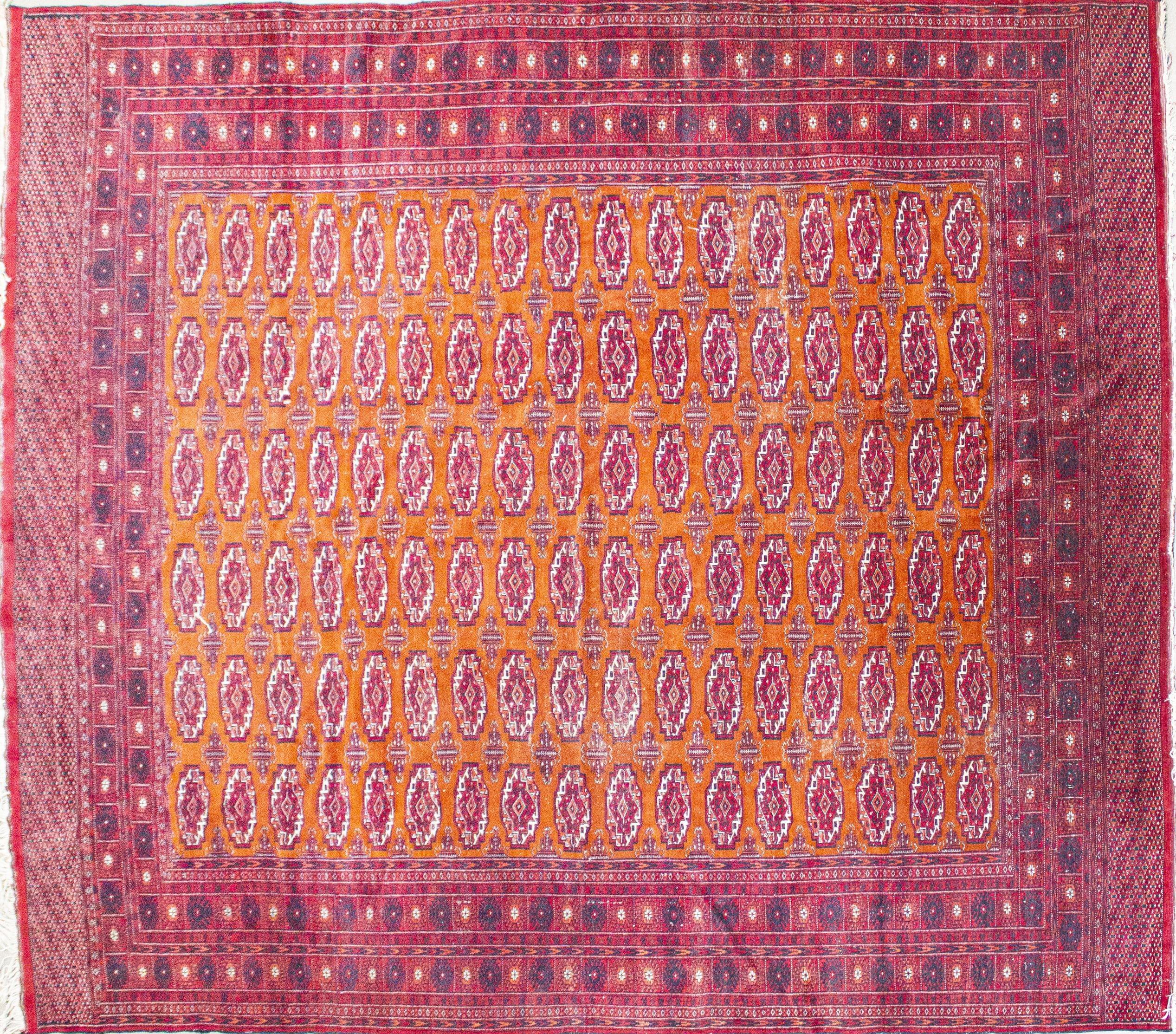 Laine à décor de semis de médaillons sur fond rouge brique, 323x255