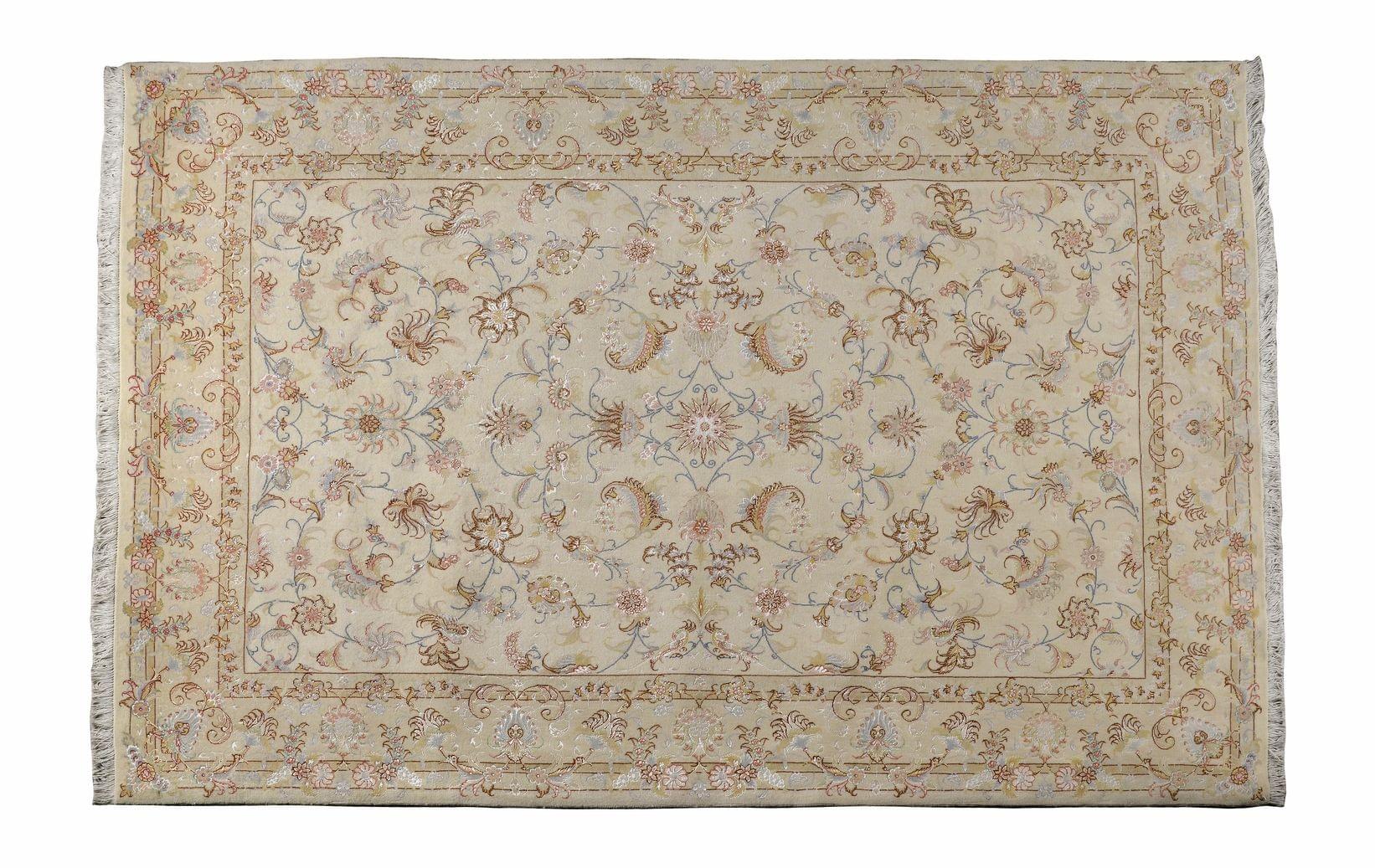 A décor de rinceaux sur fond ivoire, laine et soie, 240x162 cm