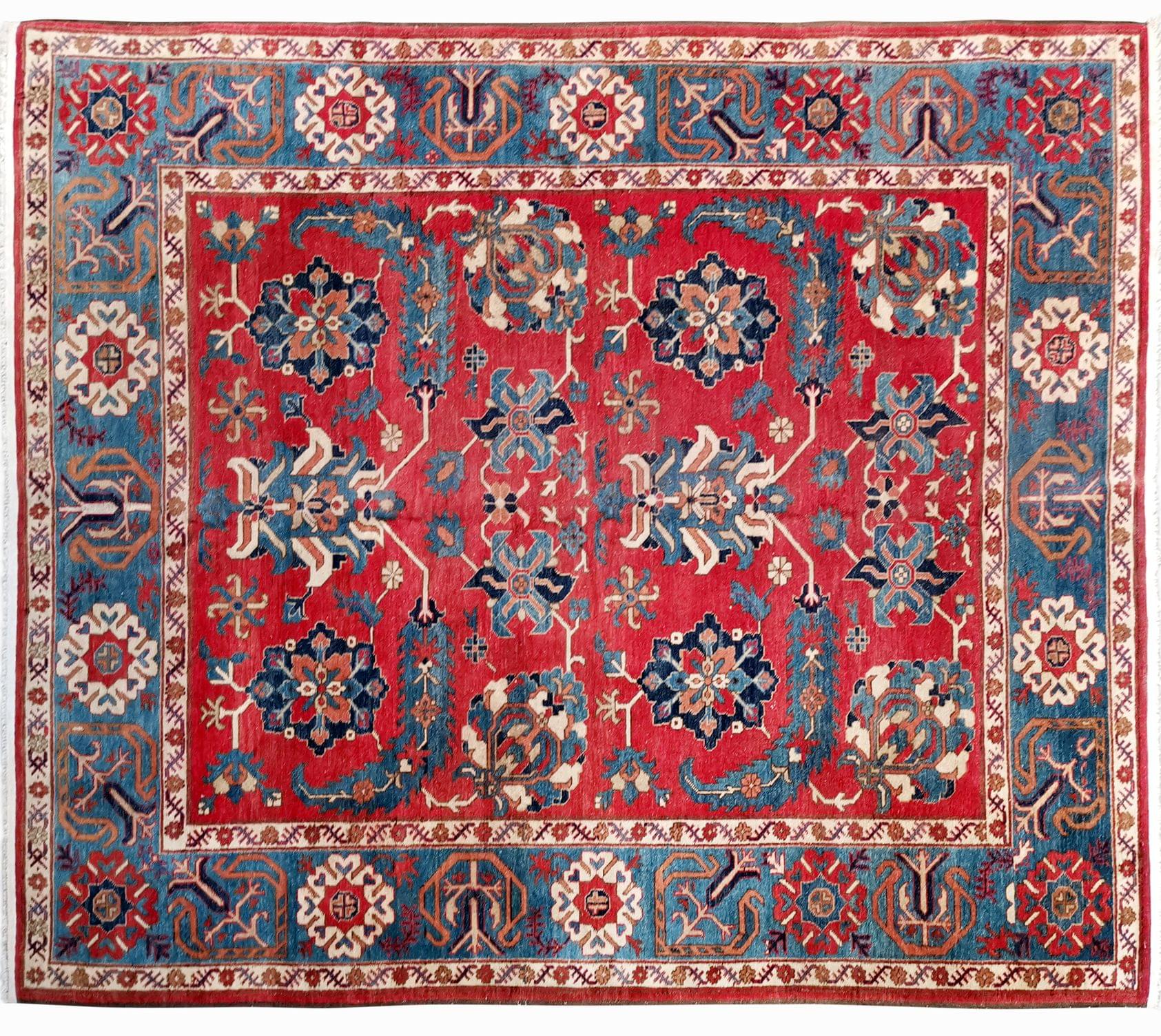 A motif central orné de fleurs et feuilles sur fond rouge, 190x233 cm