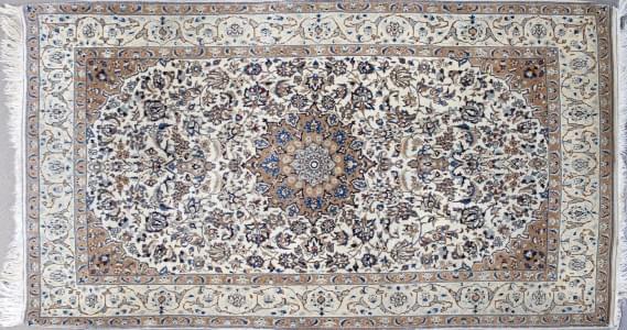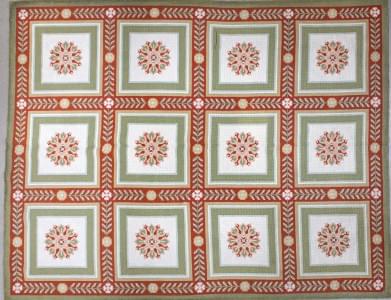 A décor d'un champ central orné de güls sur fond beige, bordure...