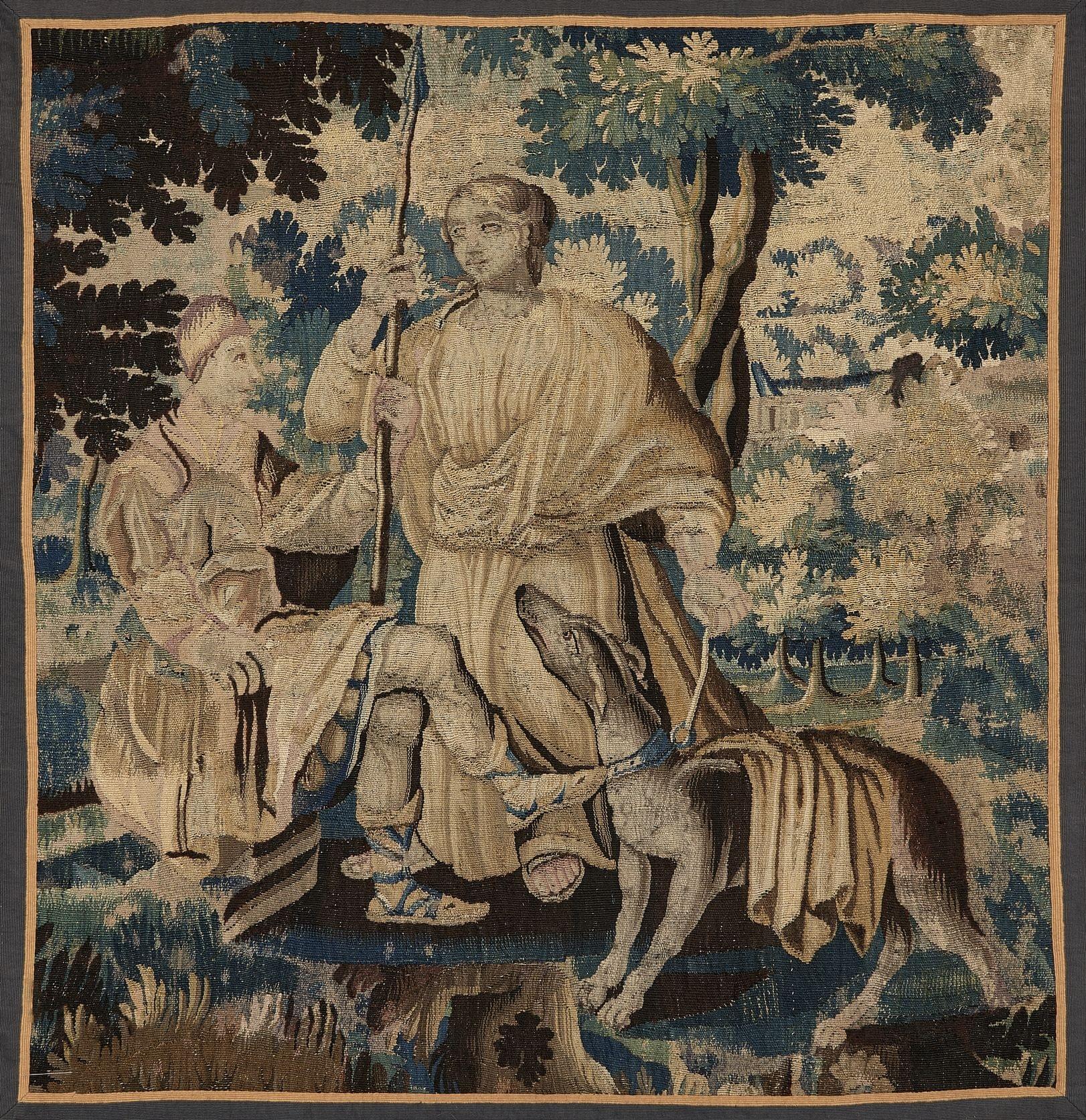 Porcelaine émaillée bleu blanc à décor d'une scène animée de per...