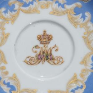 58. Tasse et soucoupe du service de banquet du palais dit "Farm Palace" à Peterhof, monogrammé au chiffre du Grand Duc Alexandre Nicolaïevitch, futur tsar Alexandre II, et son épouse Marie de Hesse-Darmstadt,