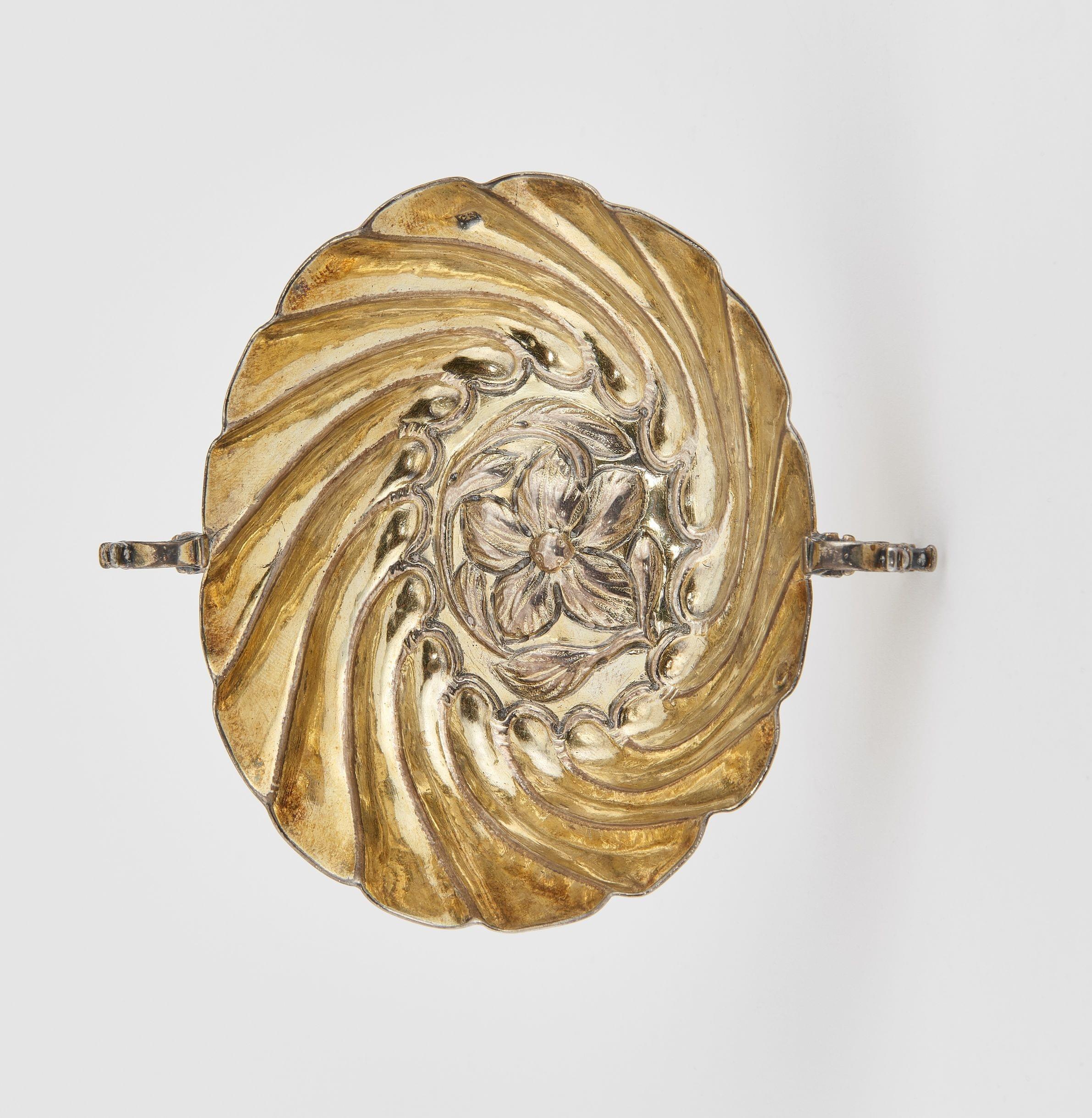 987. Verseuse festonnée à motif repoussé de fruits et séraphins