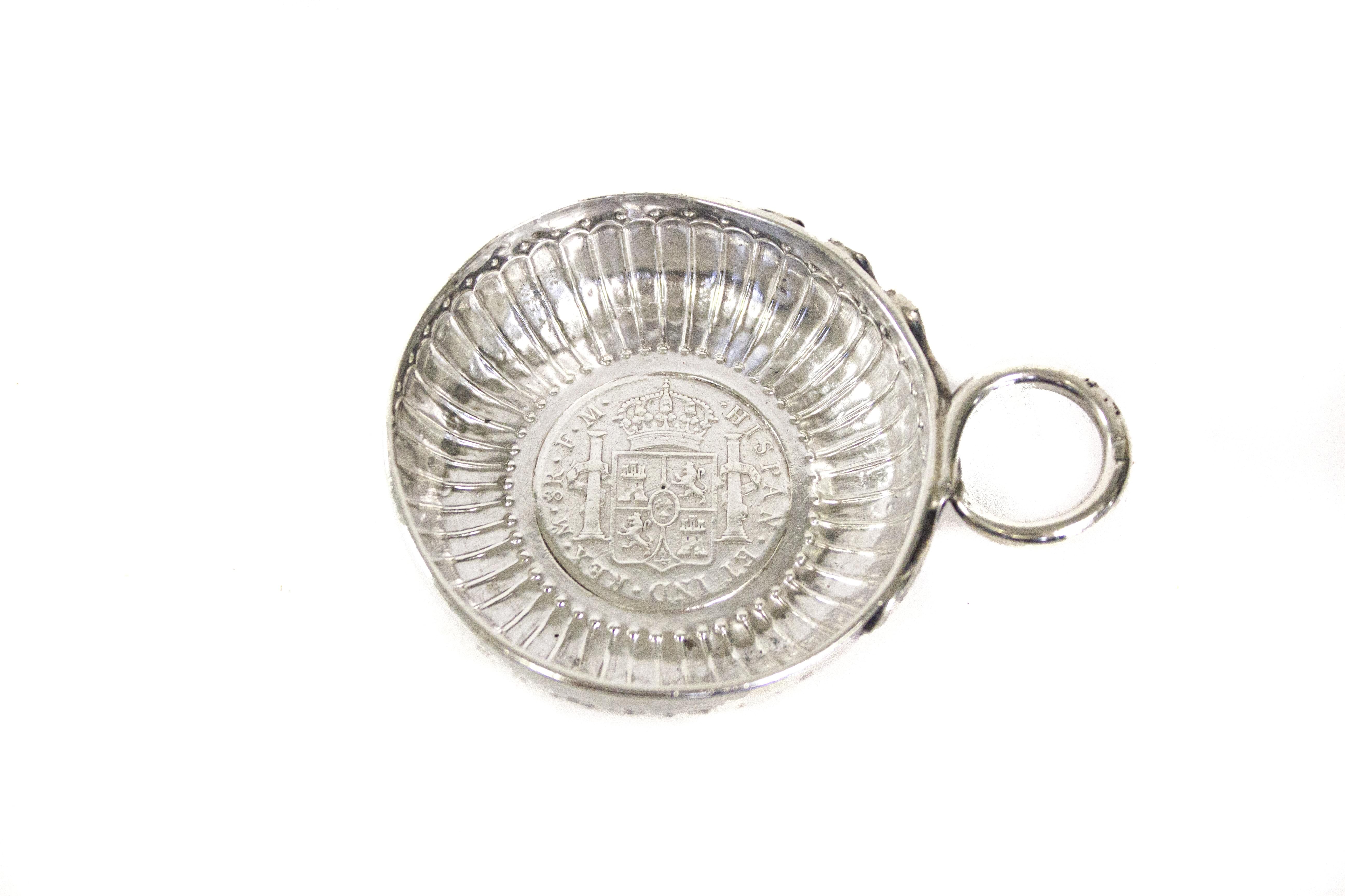 3483. Taste-vin d'époque Charles III d'Espagne enchâssant une monnaie