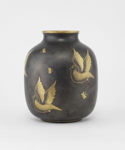 Vase, céramique noire mate à décor d'oiseaux en or, H 23 cm