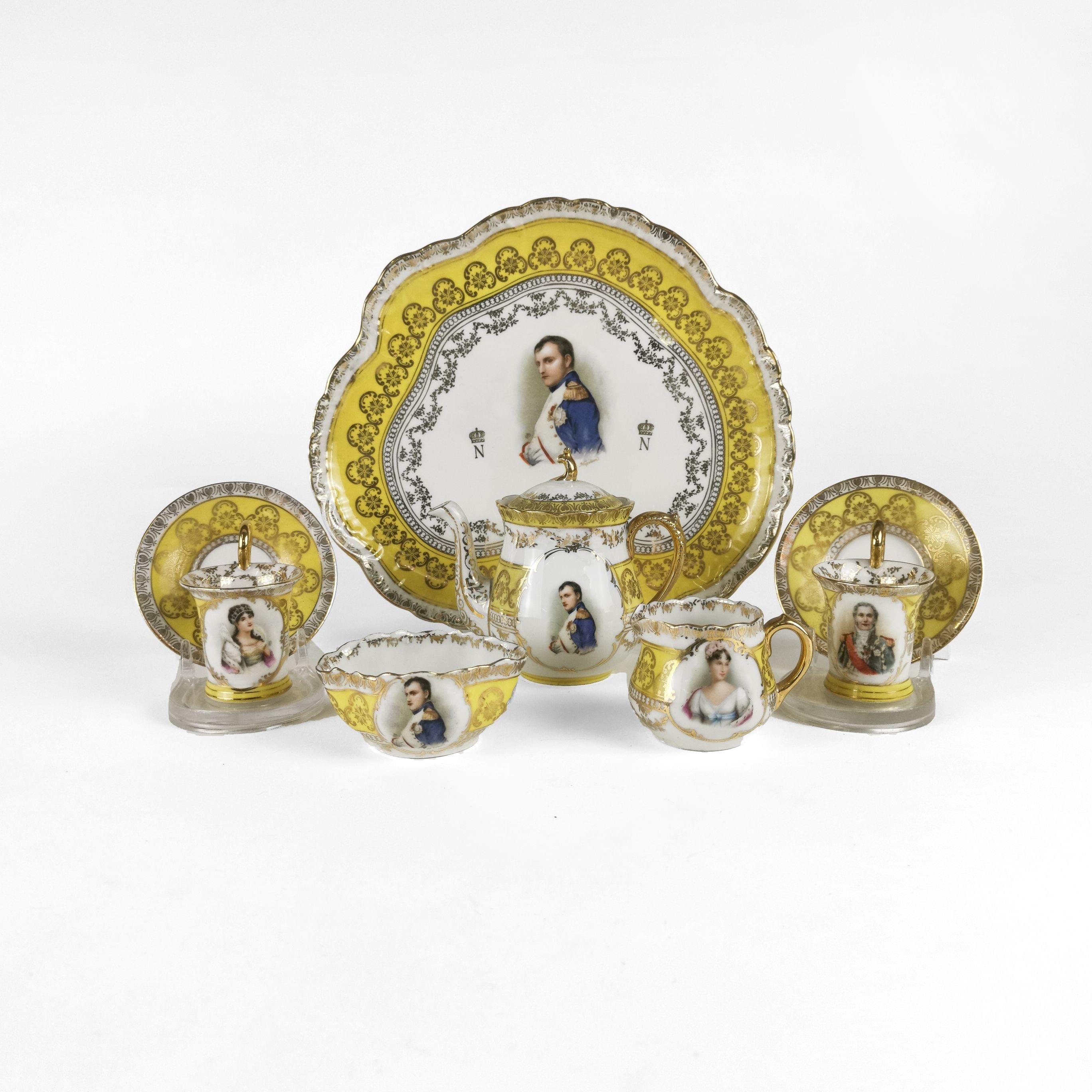 4489. Tête à tête à décor napoléonien dans une bordure jaune et or