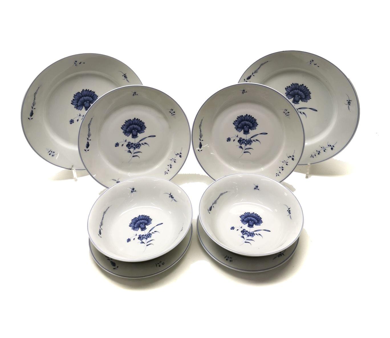 Musée Condé, Chantilly, porcelaine, comprenant: 2 assiettes à dîner, 2 à entremets, 2 à pâtisseries, 2 bols (8p)