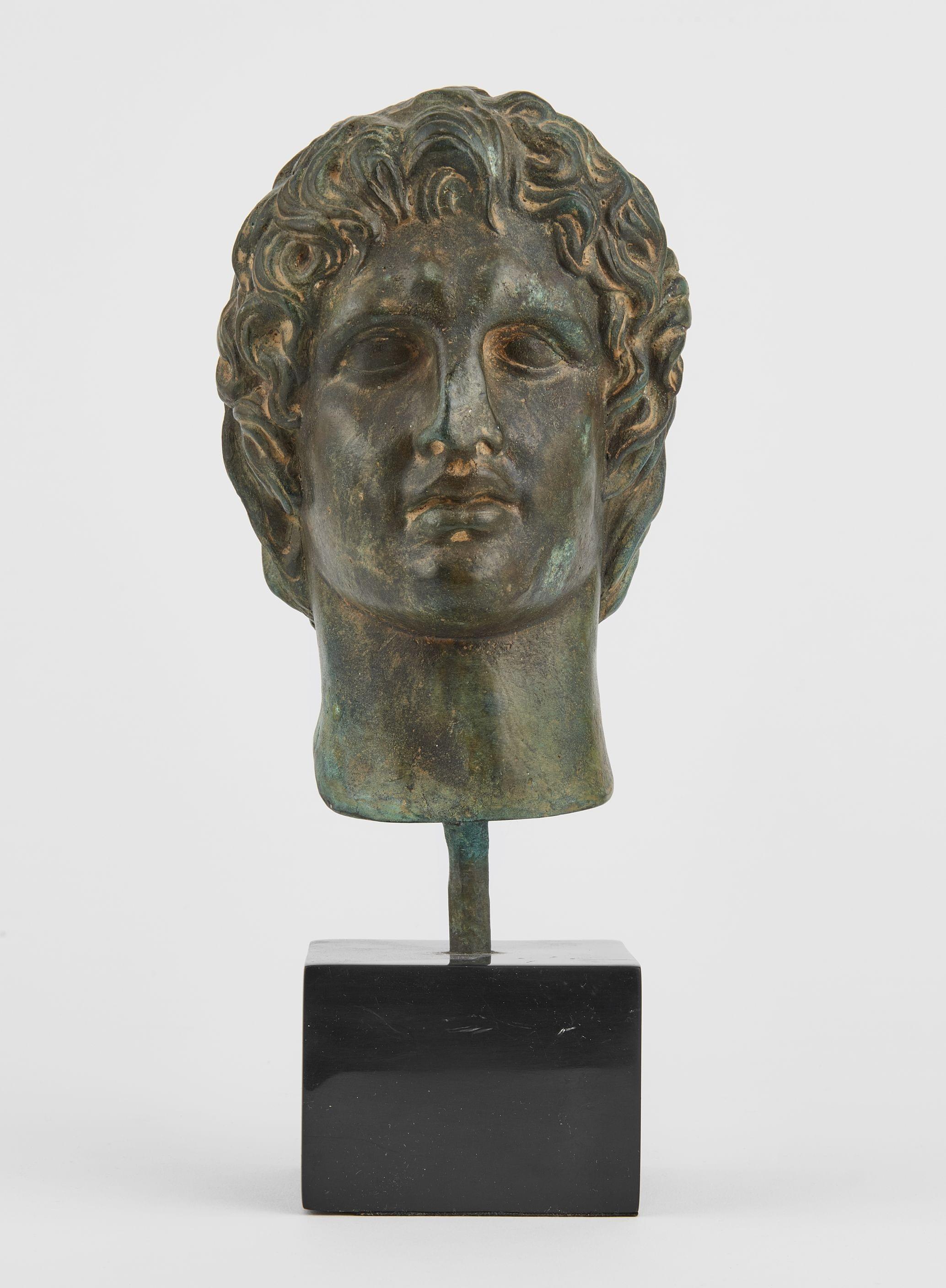 Fronton à deux volutes et centré d'un médaillon au personnage ca...
