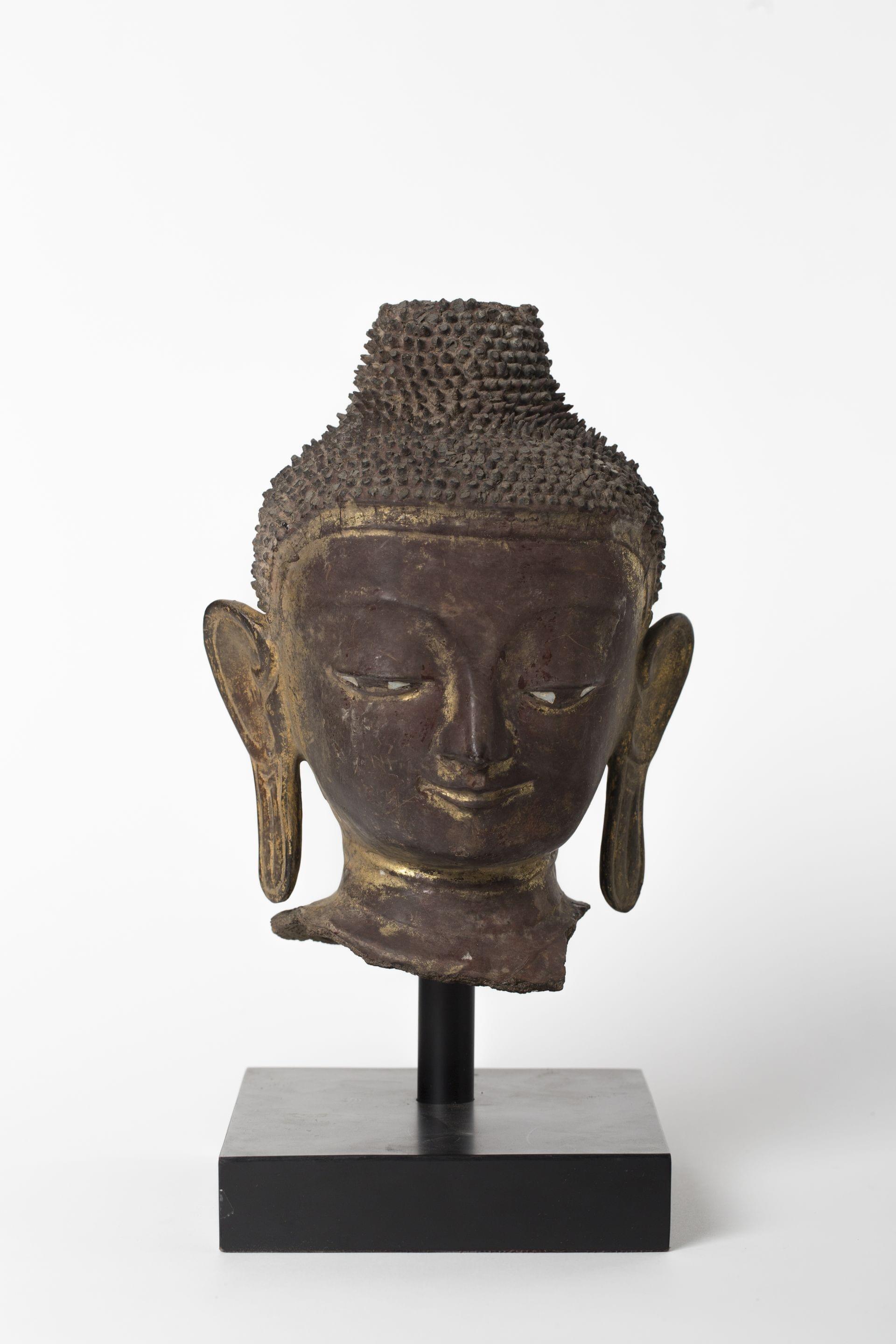 Bronze patiné et anciennement doré, H 28 cm. A gilt-bronze figur...