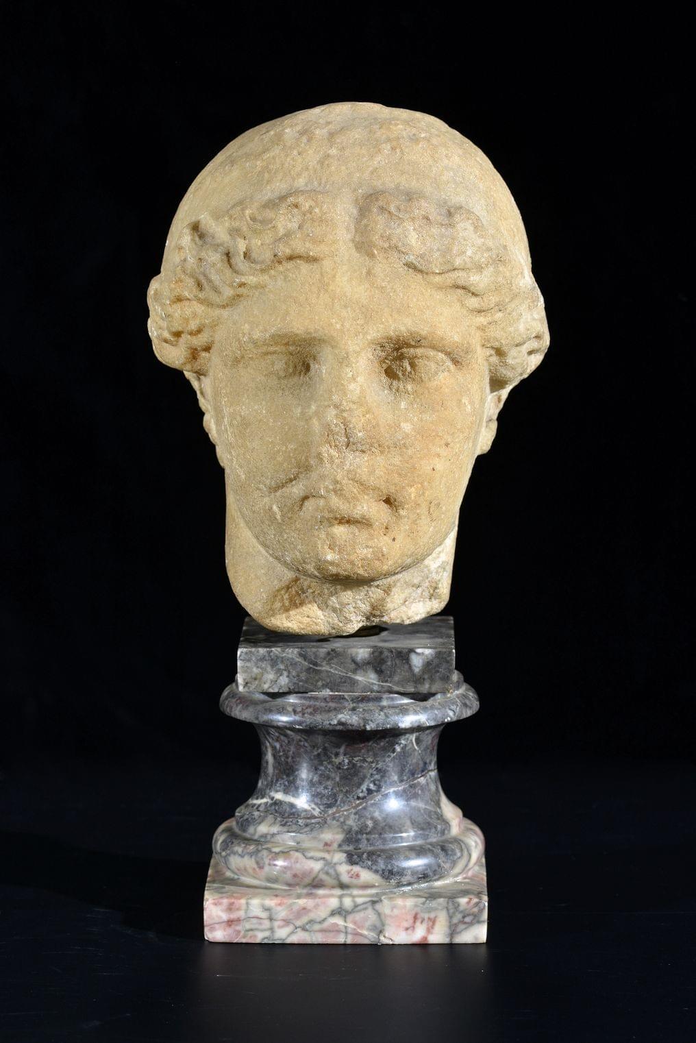 La chevelure savamment sculptée en raie et reliée par un chignon, marbre, art grec, probablement Attique, Ve s av. J-C, H 21 cm. Provenance: Collection d'un aristocrate italien résidant à Genève donnée dans les années 1970 au père de l'actuel propriétaire; collection privée genevoise depuis lors