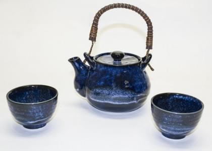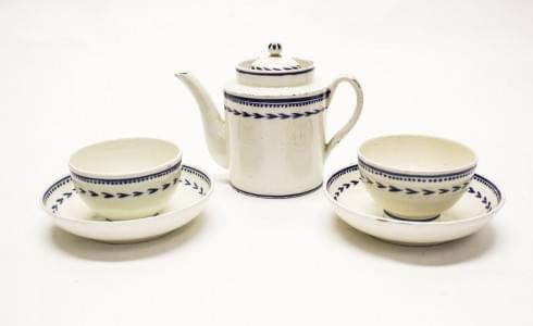 3268. Une théière et deux bols à thé Faïence fine