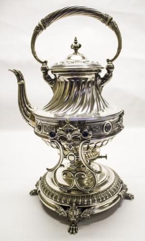 411. Théière en forme de cygne sur présentoir