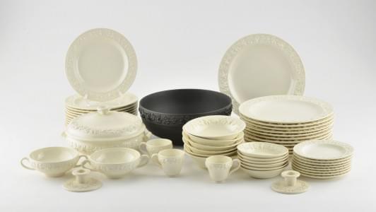 Faïence fine, Wedgwood, comprenant: 12 assiettes à dîner, 12 à d...