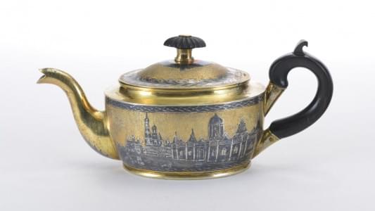 Moscou 1835, orfèvre probablement Pavel Sazikov, vermeil 84 zolotniks et ébène, L 23 cm, 420 g. provenance: Vente Christie's, Fine Russian Works of Art, Genève, 9 mai 1979, lot 32. Littérature: Alexander von Solodkoff, Orfèvrerie russe du XVIIe au XIXe siècle / Russian Gold and Silverwork, 17th-19th Century, Office du Livre/Rizzoli, 1981, p. 102 (illustration n°123)