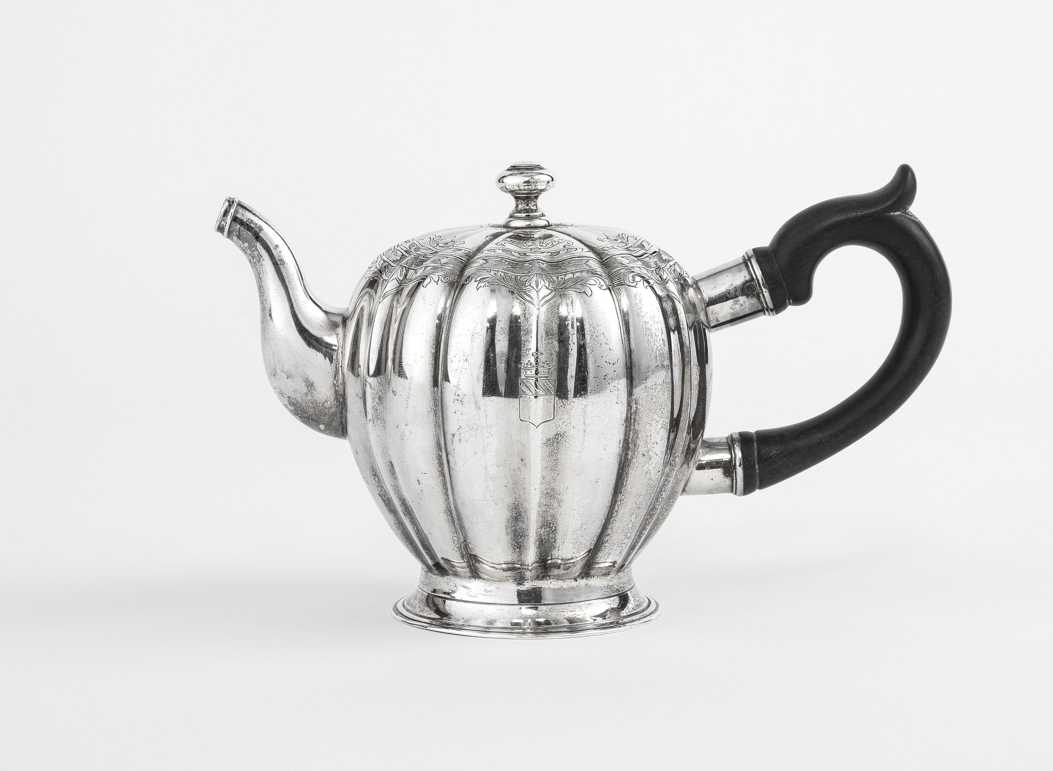 138. Théière ovale d'époque Empire à prise cygne en rappel pour le be...