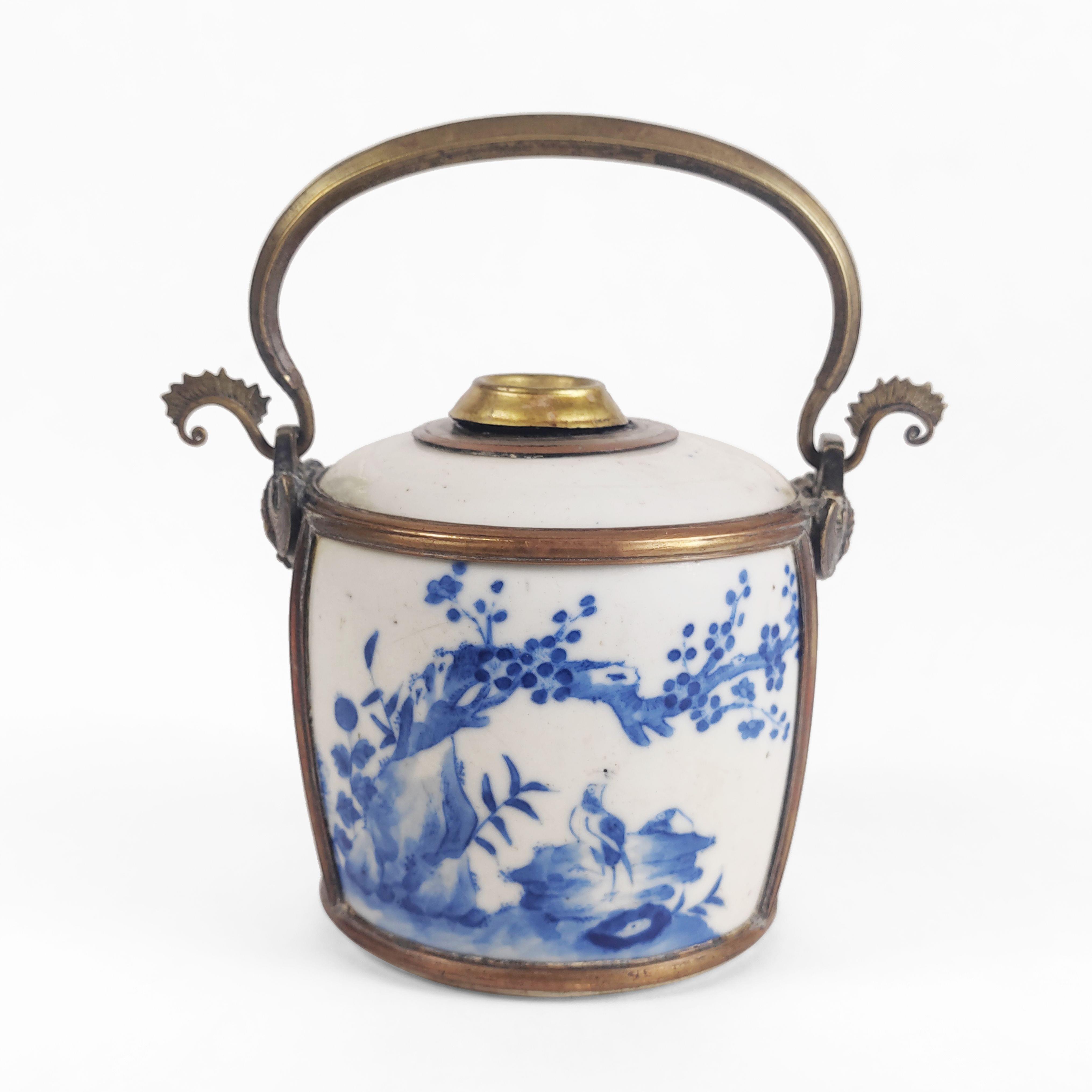 Porcelaine émaillée bleu blanc et bronze, H 15 cm