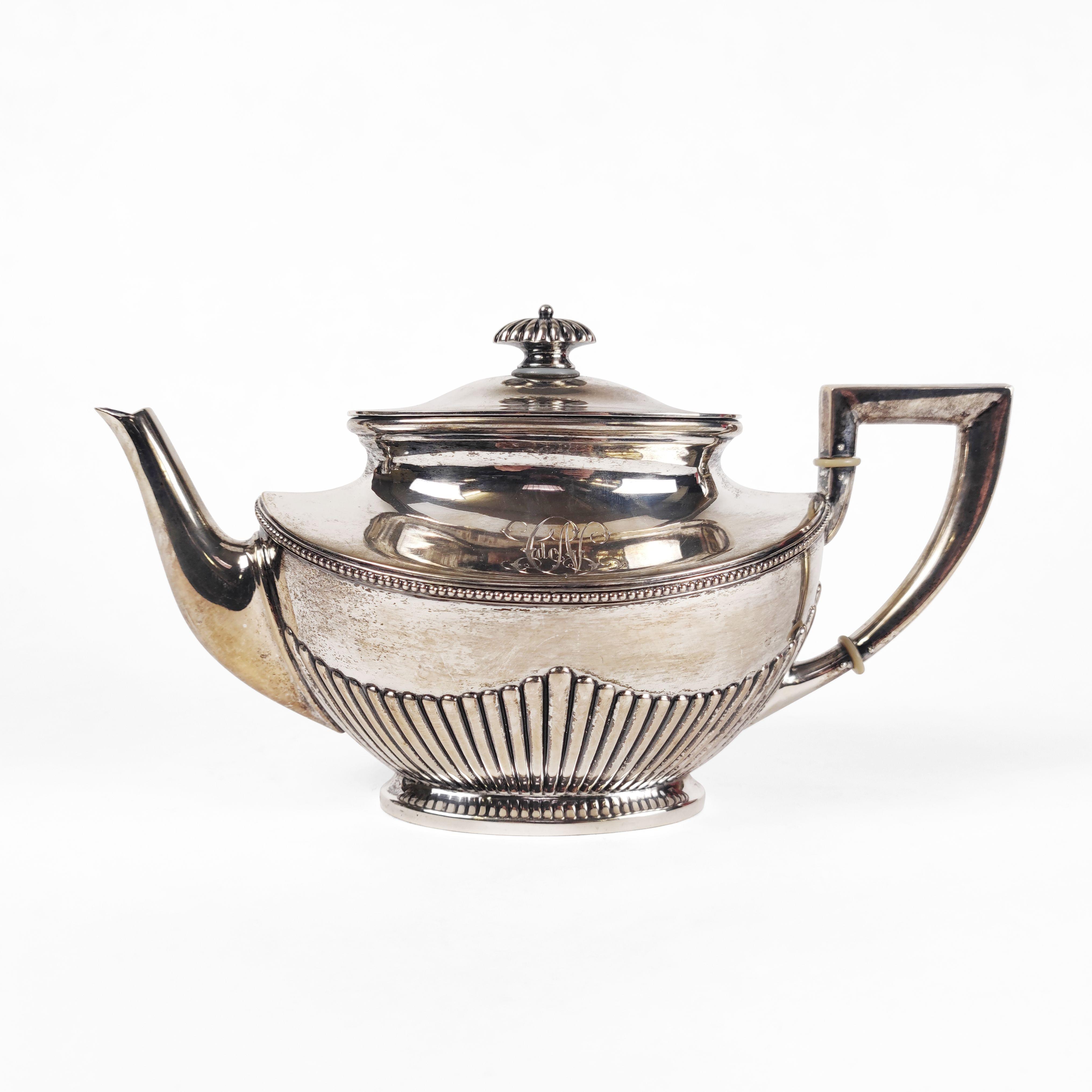 140. Théière boule à côtes armoriée Ployard