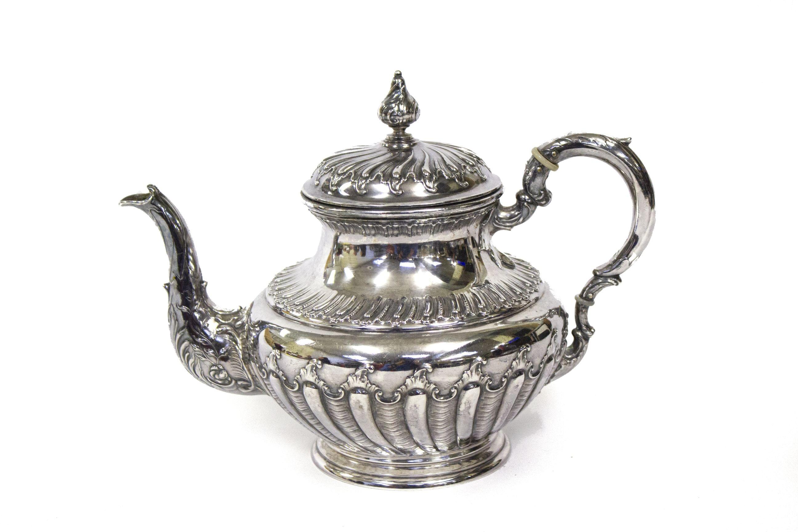 367. Ensemble d'une théière piriforme festonnée et un plateau de serv...