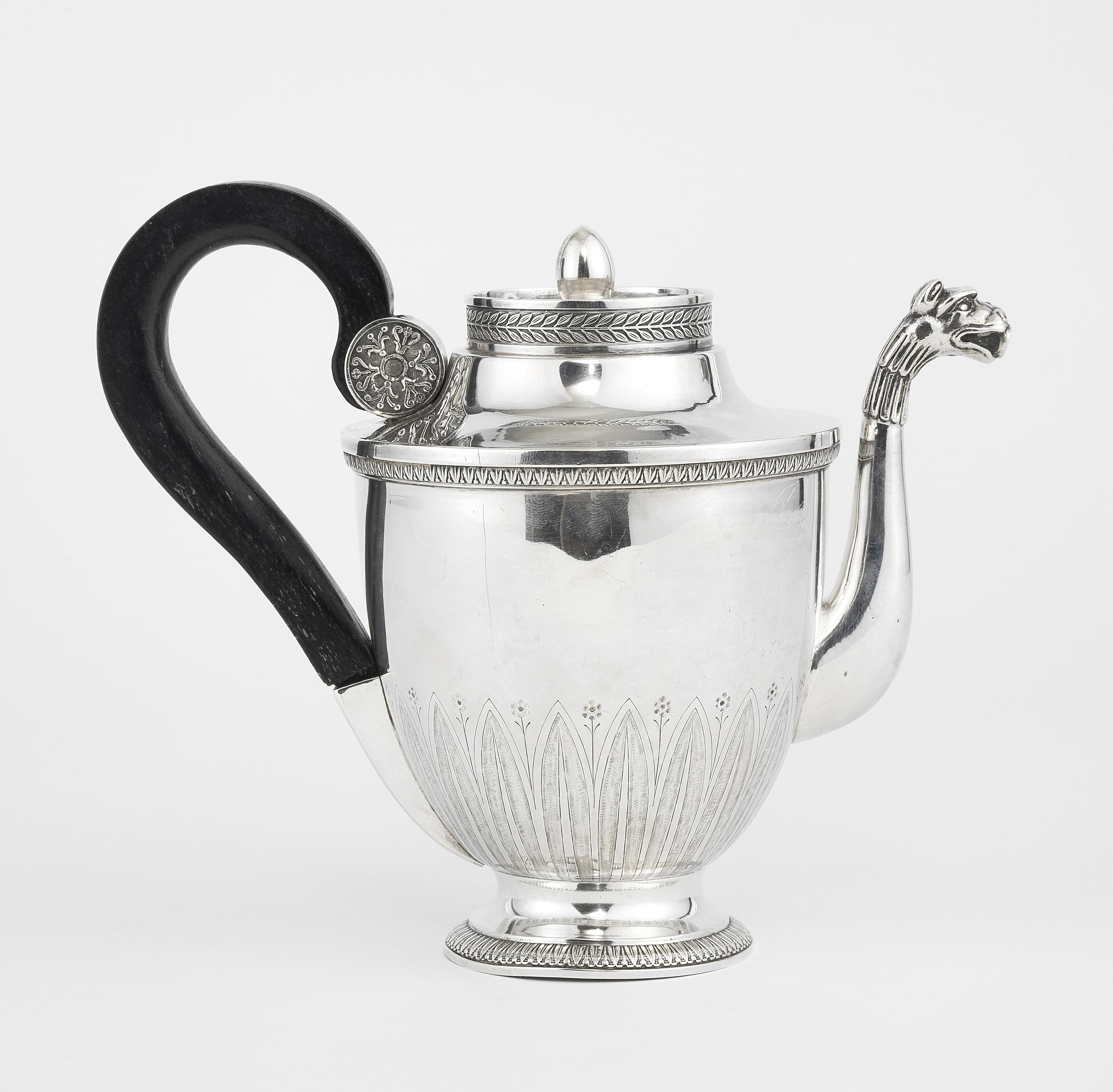4176. Théière égoïste d'époque Empire à bec verseur tête de léopard