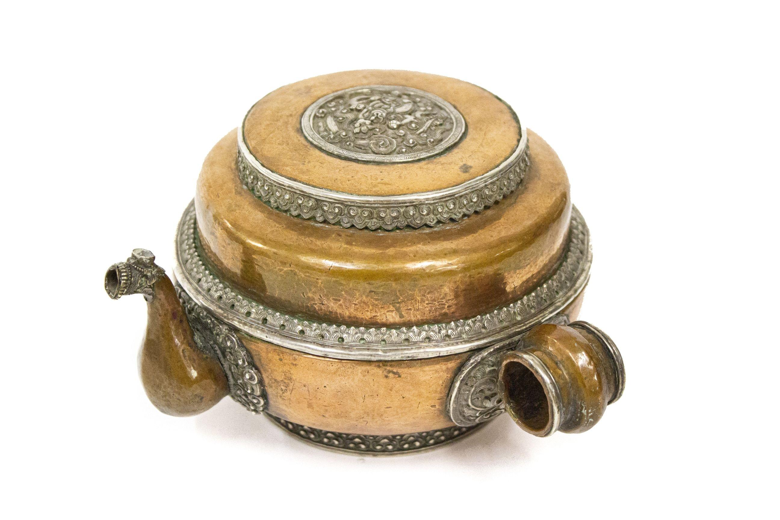 Cuivre et métal argenté travaillé au repoussé, D 13 cm