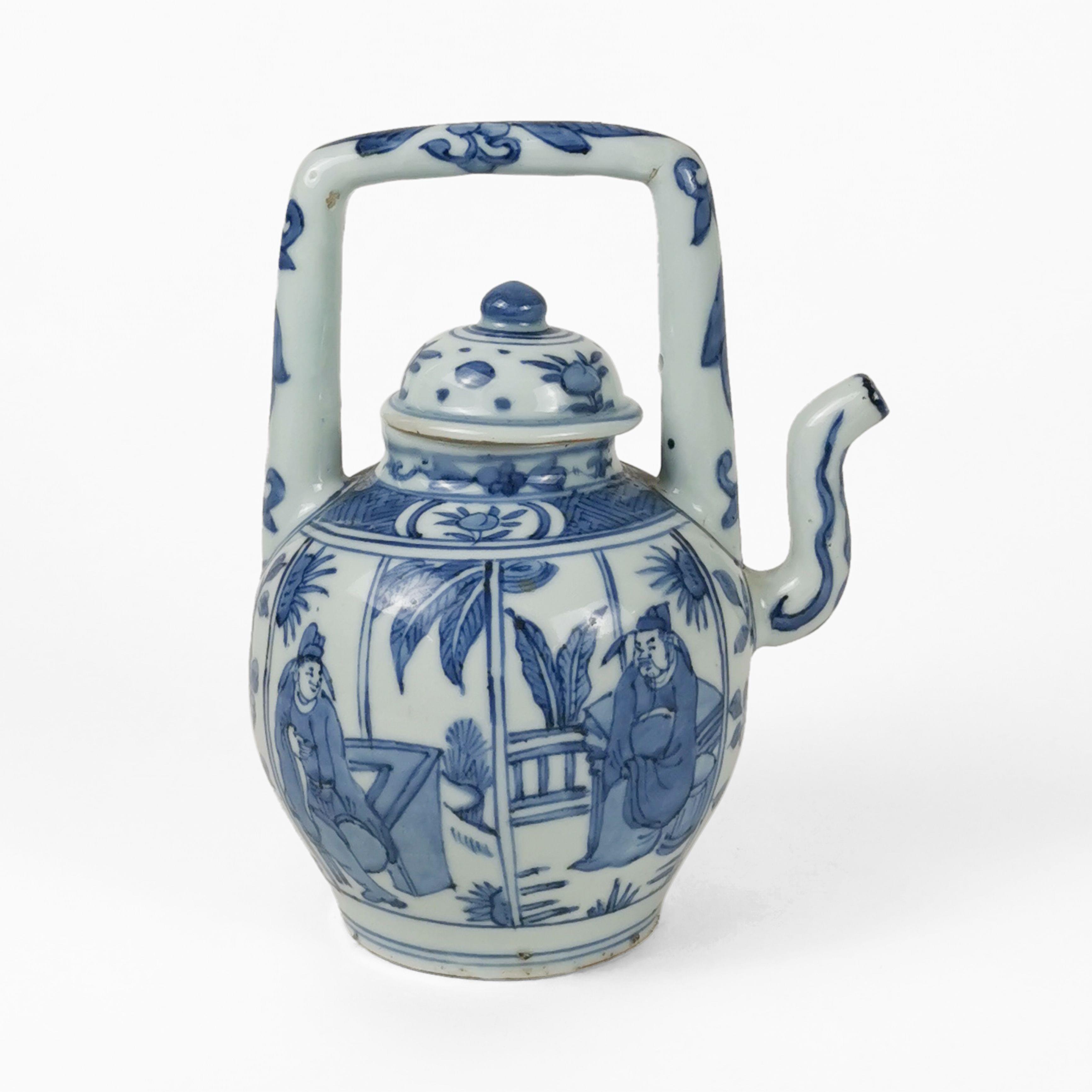 Porcelaine émaillée bleu blanc à motif de personnages, H 22,5 cm