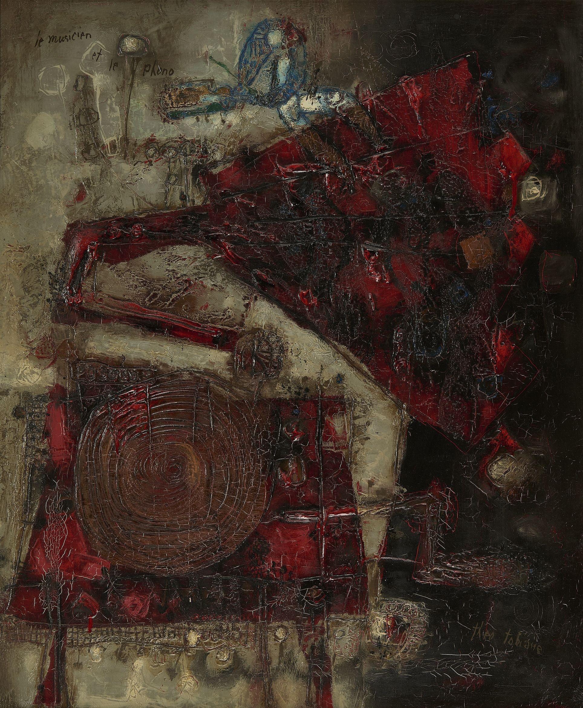 Le musicien et le phono, huile sur toile, titrée et signée, 62x53 cm