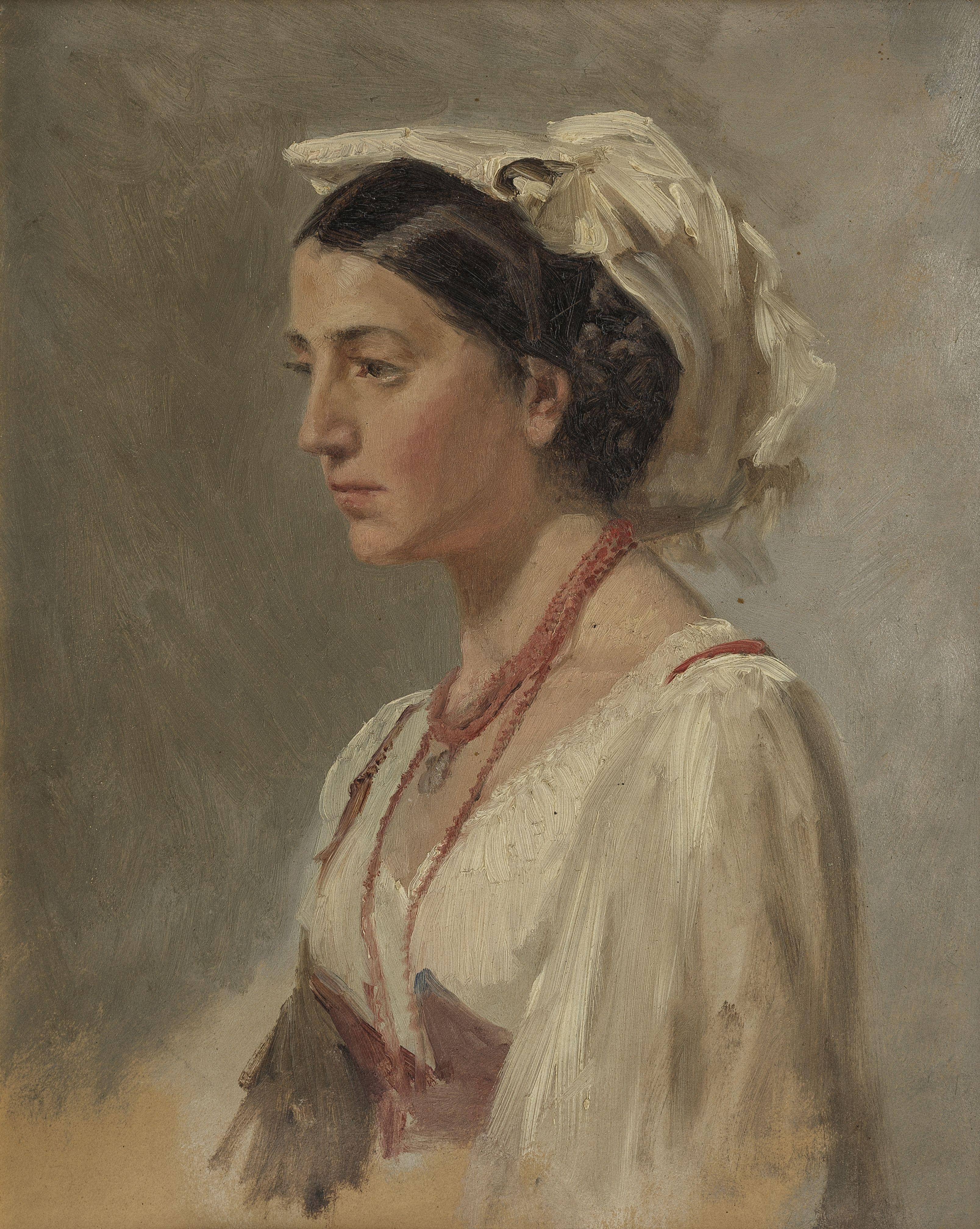 Portrait présumé de sa femme en costume italien, huile sur carton, 26x20,5cm