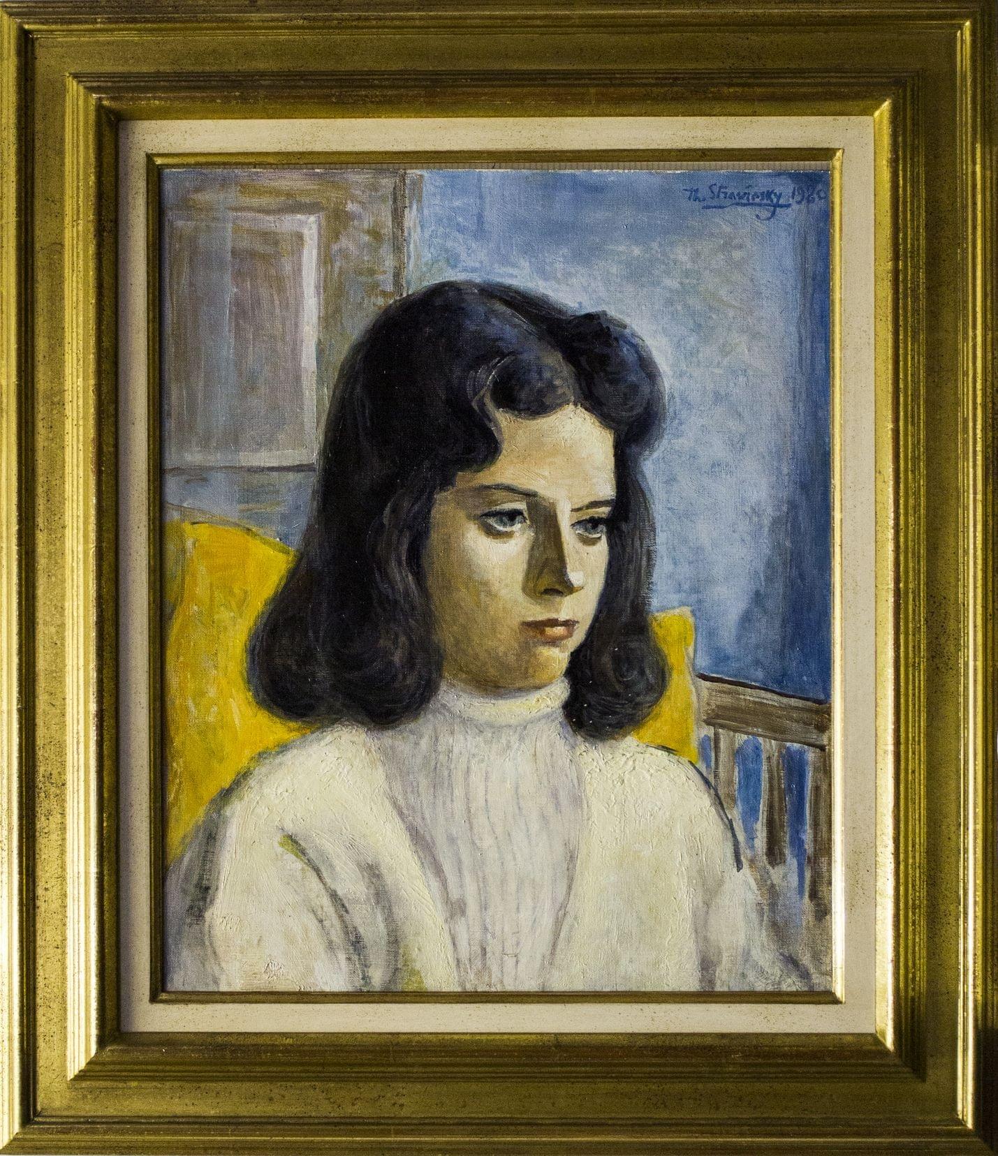 Paire de portraits de jeunes femmes, huiles sur toile et pavatex, signées et datées 1980 et 1981, 46x38 cm