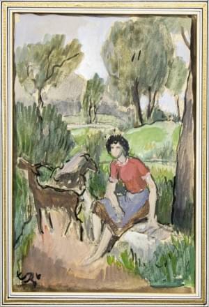 La gardeuse de chèvres, aquarelle et gouache sur papier, monogra...