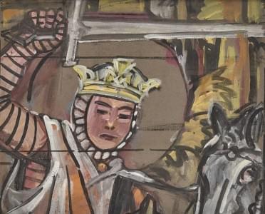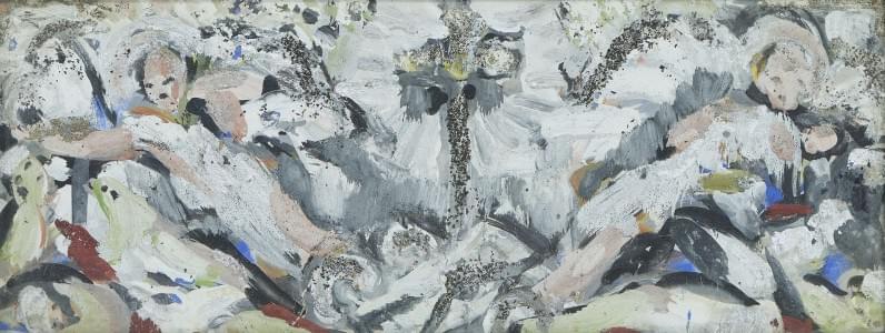 Anges autour de la Croix, technique mixte sur carton, 9,5x24,5 c...