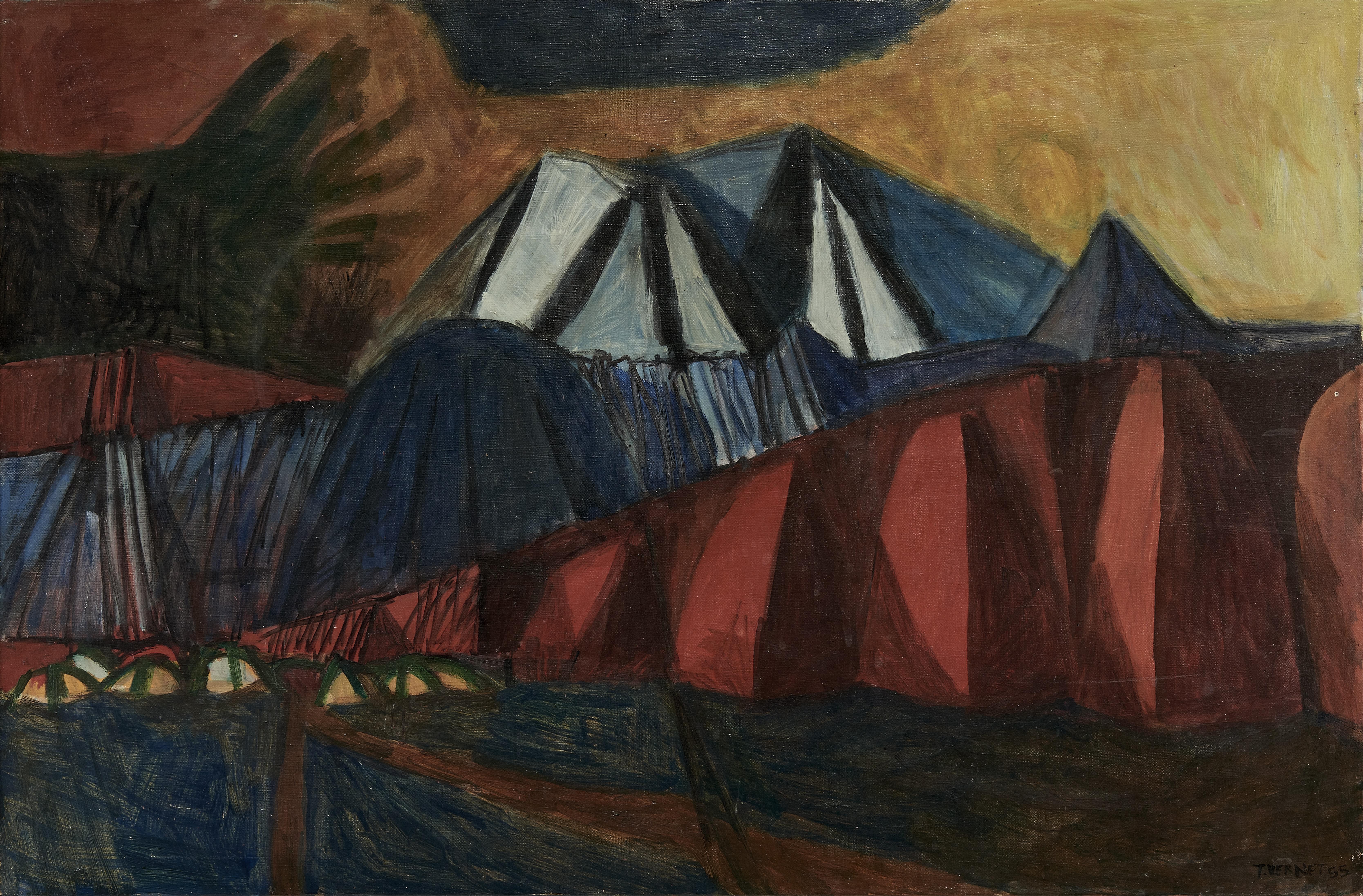 Procession, huile sur toile dédicacée "Pour Jacques et Thérèse,...