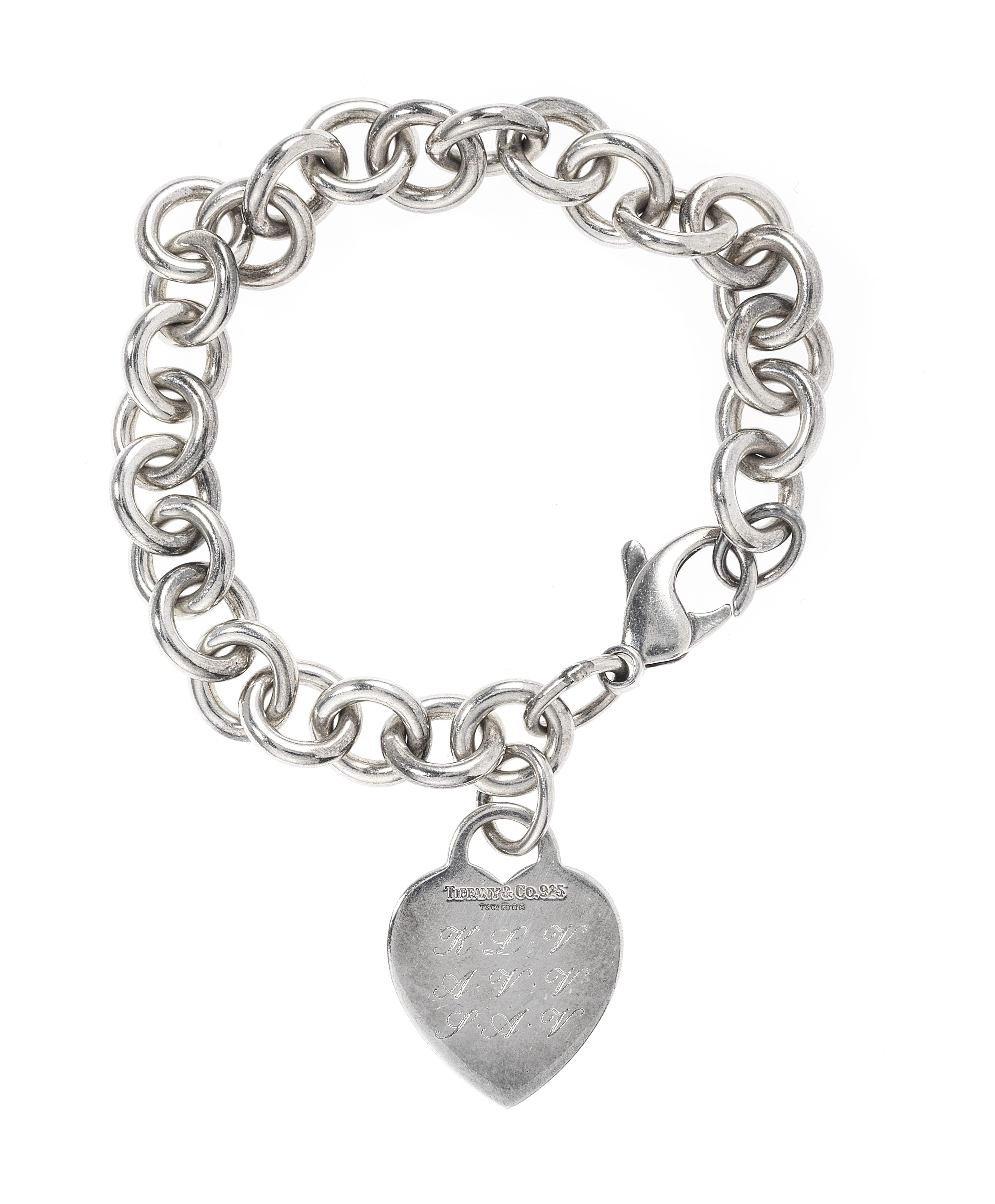 3123. Tiffany, bracelet à maille ronde retenant une pendeloque en forme de cœur Love Always gravé d'initiales