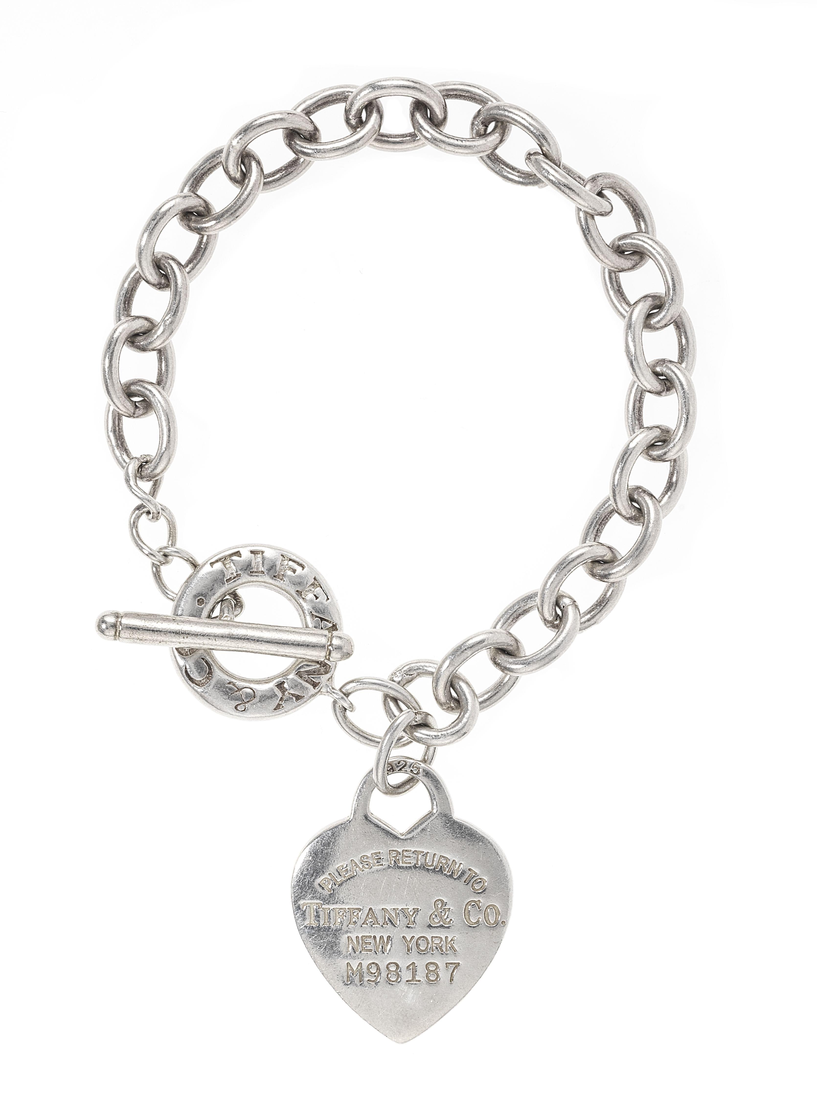 3039. Tiffany & Co, bracelet à maille ovale retenant une pendeloque en forme de coeur