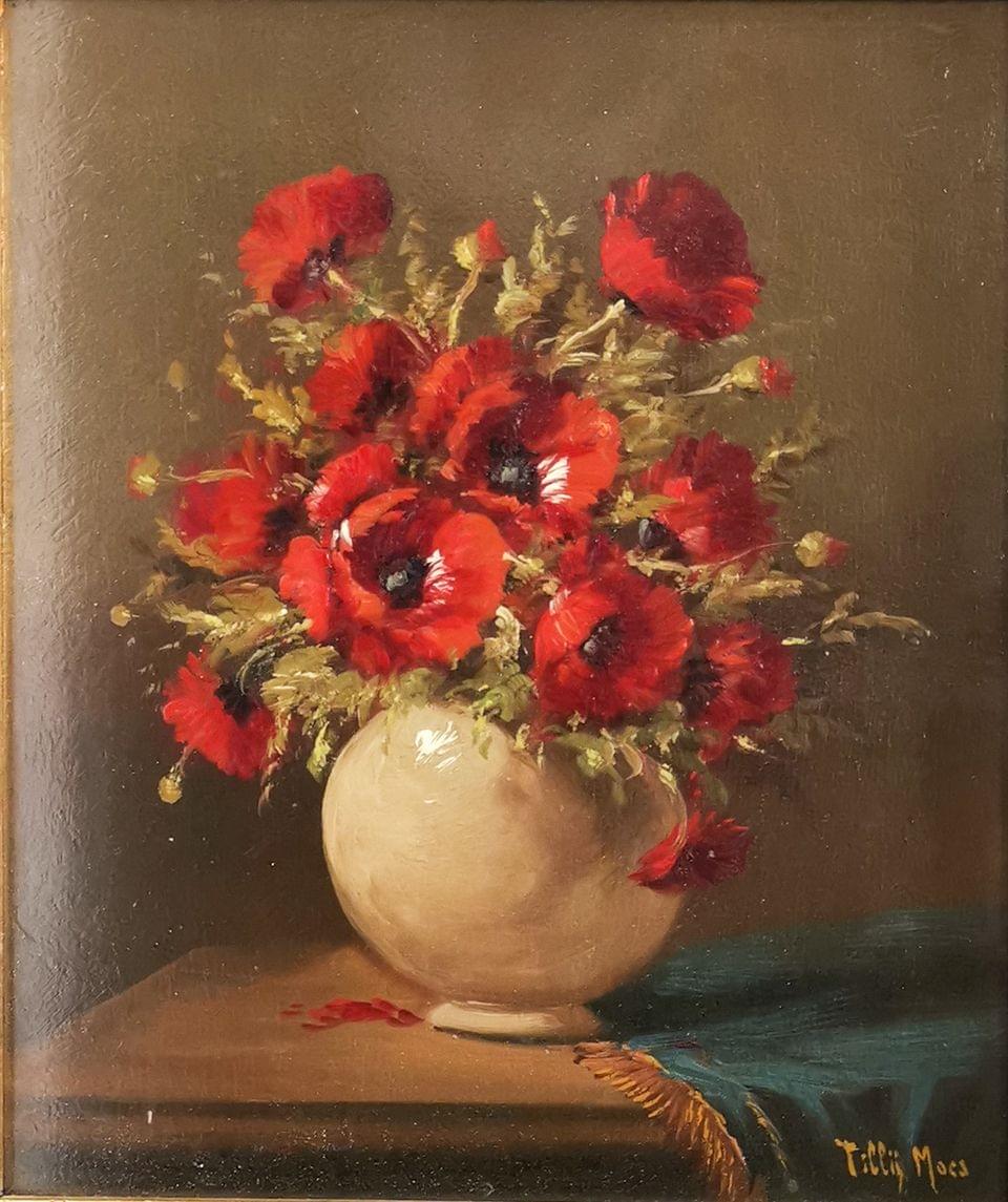 Coquelicots, huile sur toile, signée, 23x20 cm