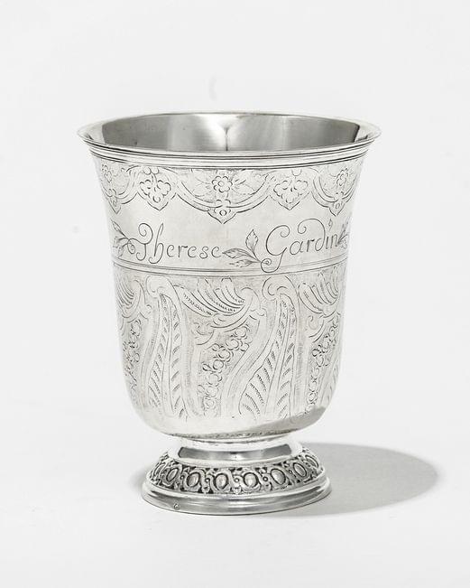 378. Timbale tulipe d'époque Louis XV à décor ciselé d'entrelacs et gravé de volutes et lambrequins