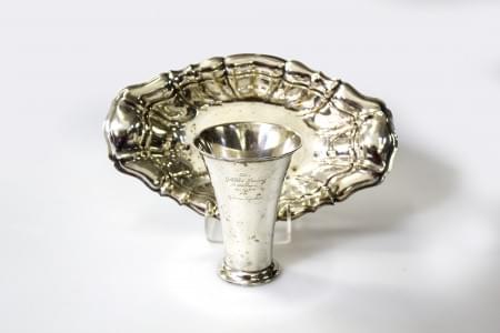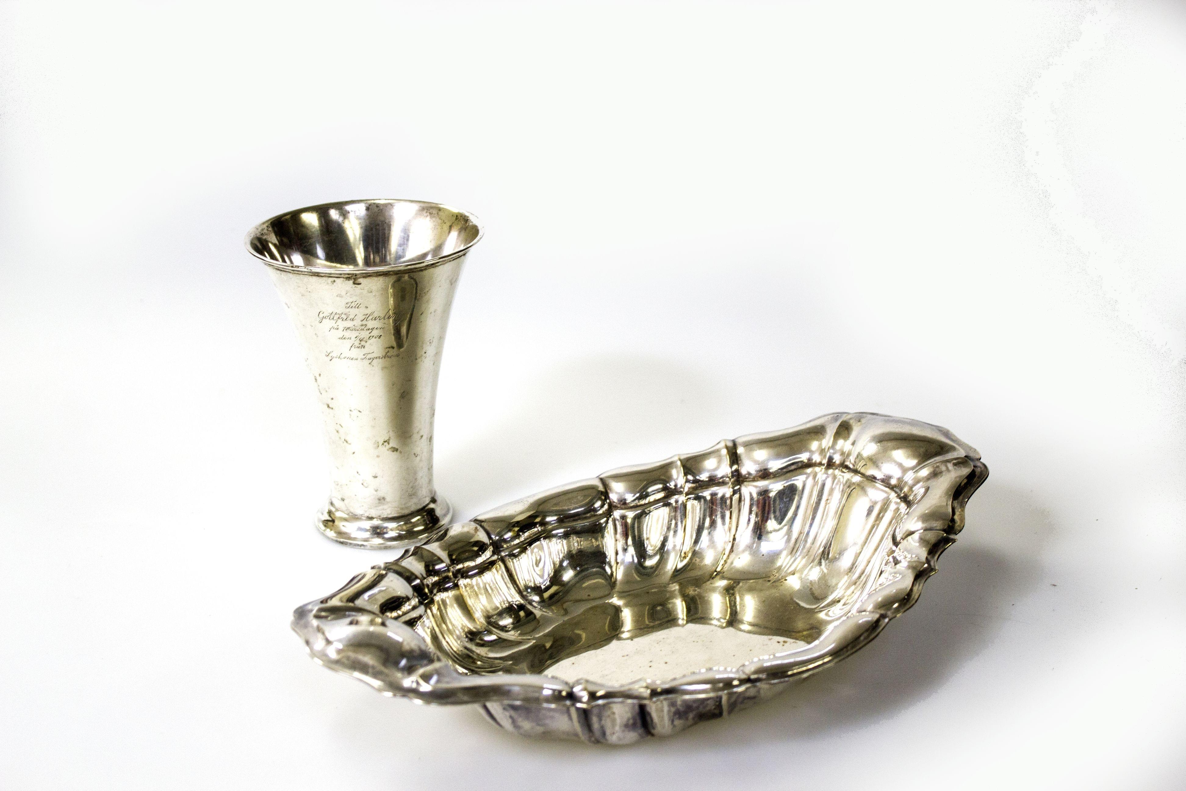 818. Grande timbale et plateau rond à motif héraldique appliqué, Suèd...