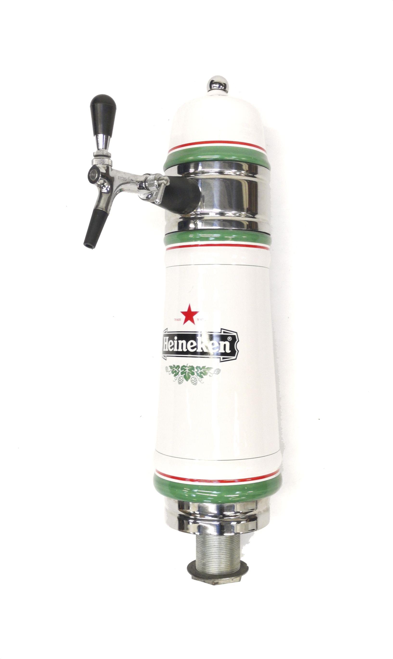 Un robinet, métal et corps en porcelaine blanche aux couleurs de Heineken, H 58 cm