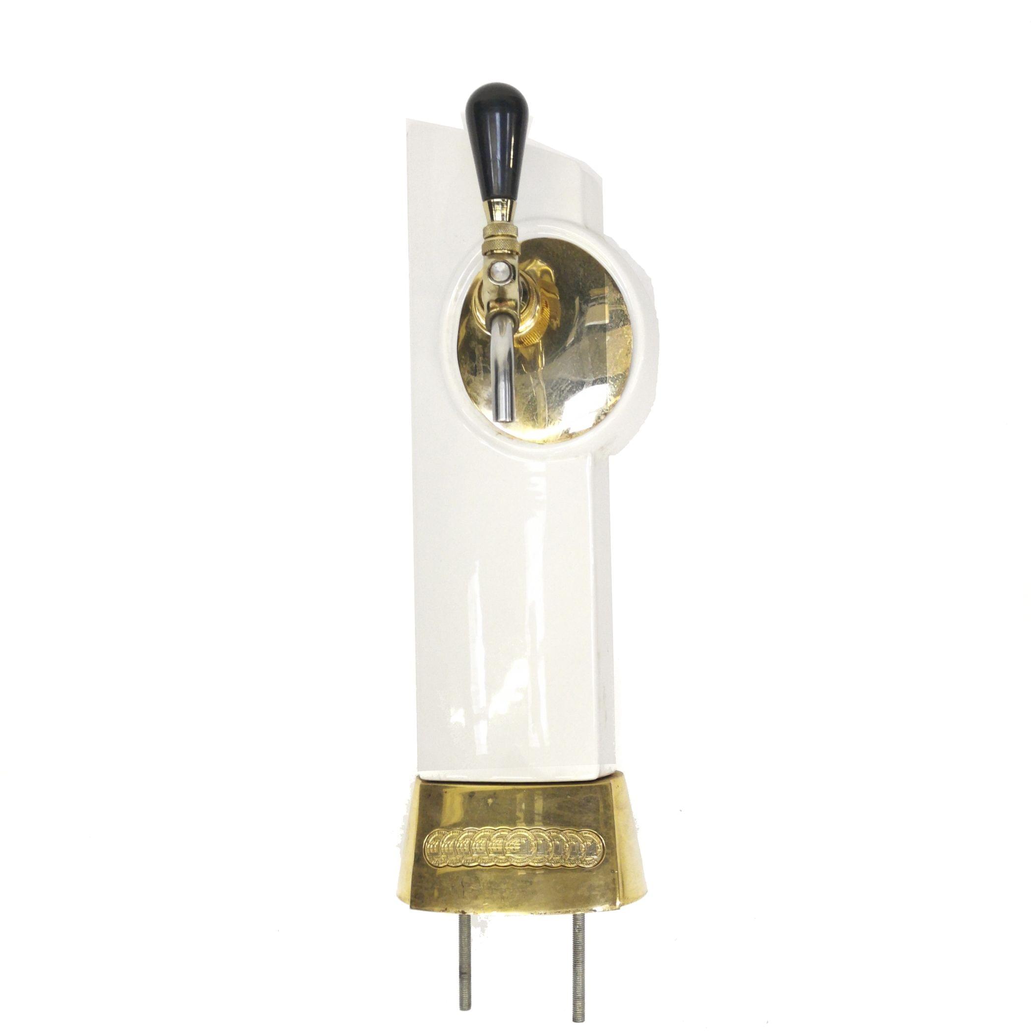 Deux robinets, métal et corps en porcelaine blanche, H 47 cm